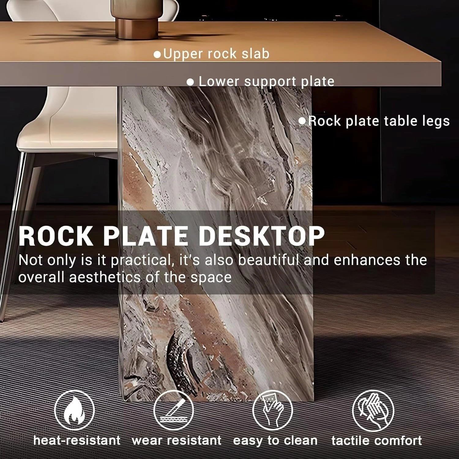 Rock Slab Design: The countertop, tabletop, and outer legs of the central island are precision crafted from high‑quality thick rock slabs, delivering exceptional strength, durability, and timeless refinement.