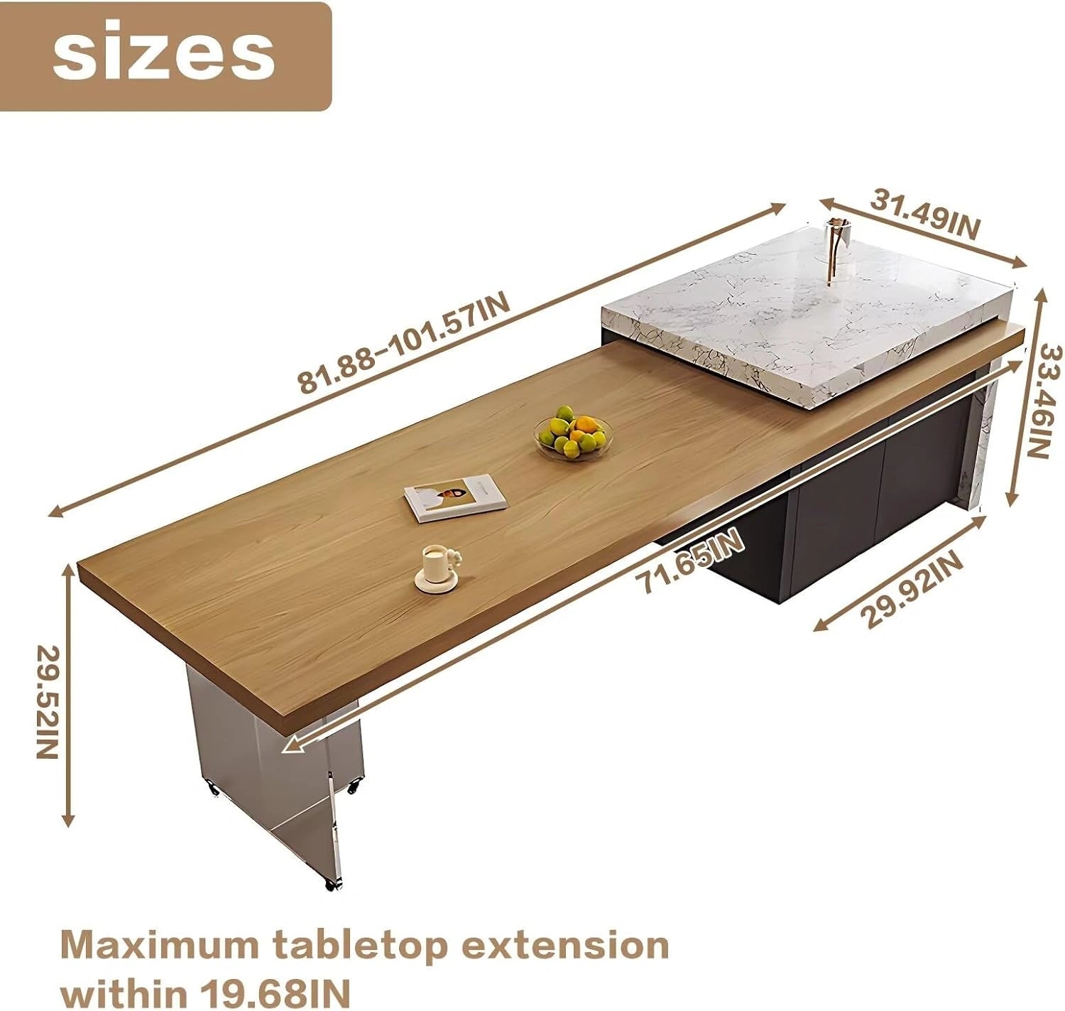 Extendable Design: This dining table features a versatile extendable function, with the ability to add an extra 50 centimeters in length. It transforms your dining area into a multifunctional hub that effortlessly accommodates cooking, dining, working, and storage needs.