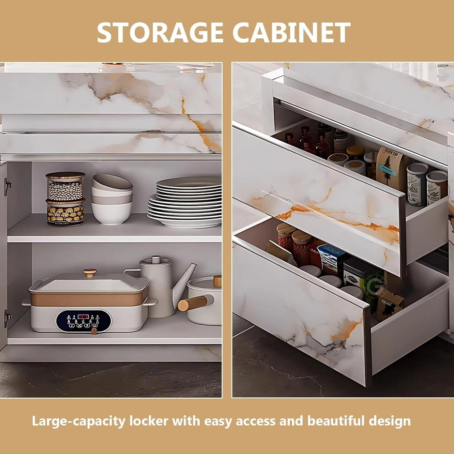 Light Luxury Style: The white tabletop with a unique pattern is full of fashion appeal. The main white tone looks fresh, while the translucent acrylic base enhances the exquisite, stylish, and bright atmosphere.