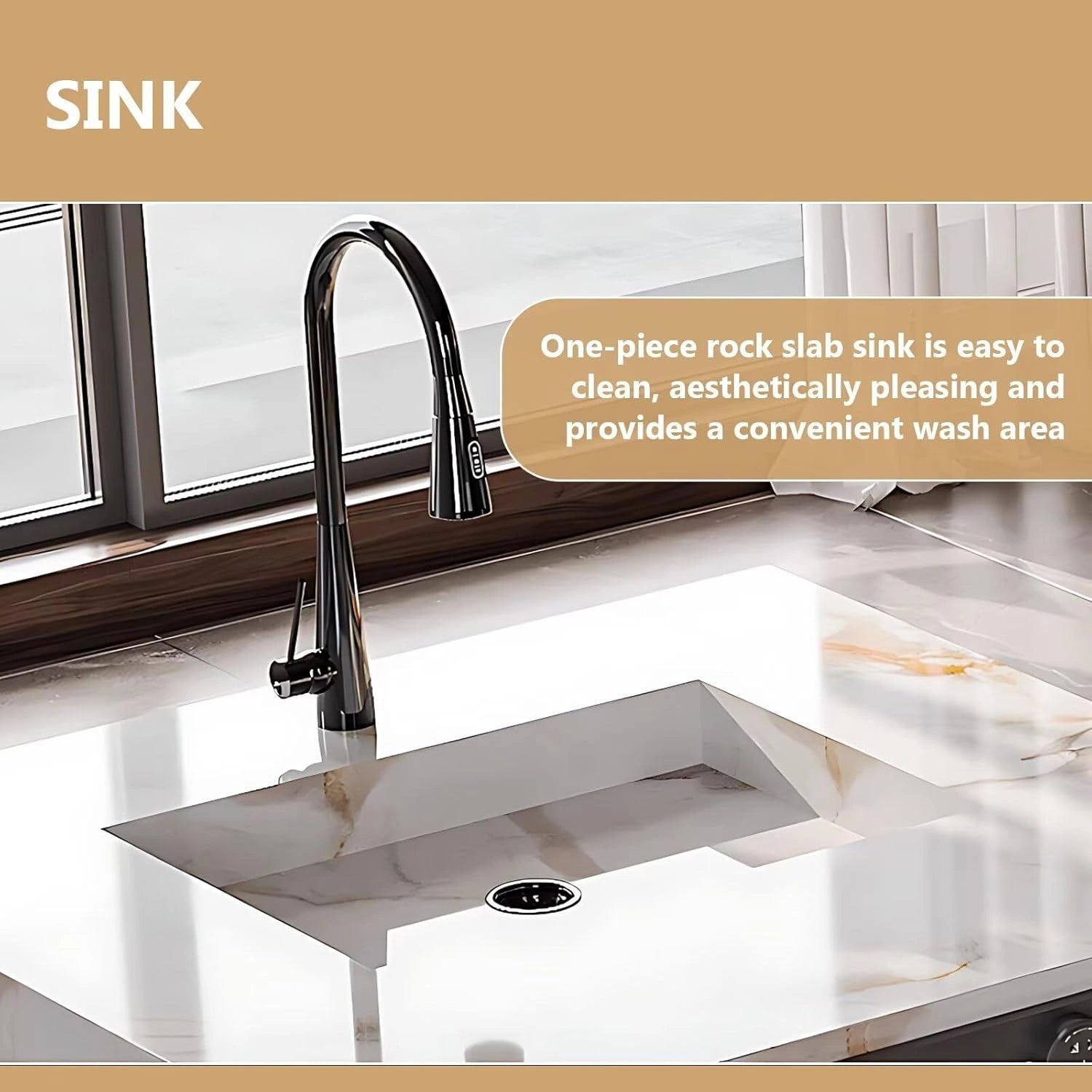 Integrated Slate Sink: This integrated design removes the gap between the sink and the countertop, creating a perfect fit with the island and improving the overall functionality of the kitchen.