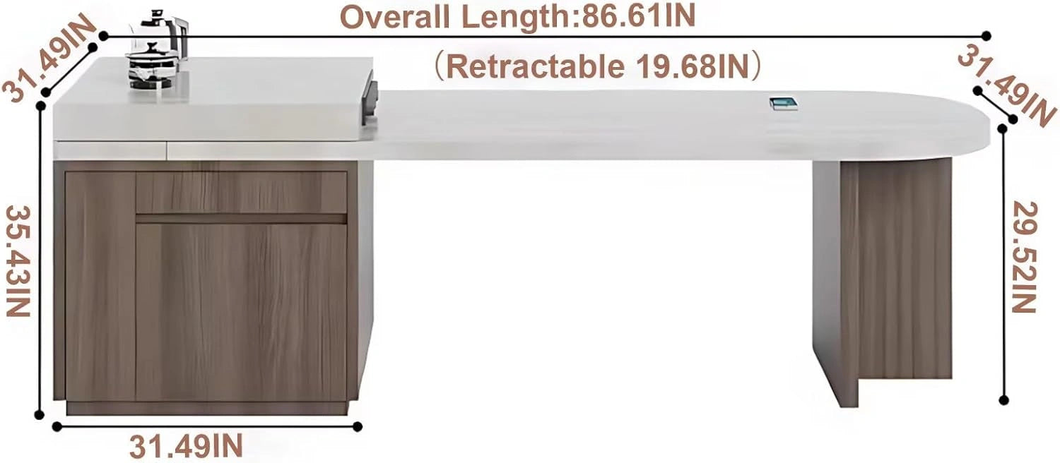 Luxury Log Style: The white wood-textured tabletop offers a fresh, simple, and luxurious look. The dark brown wood-grain cabinet and table legs feature exquisite craftsmanship. The combination of white and wood tones blends easily with many interior styles.