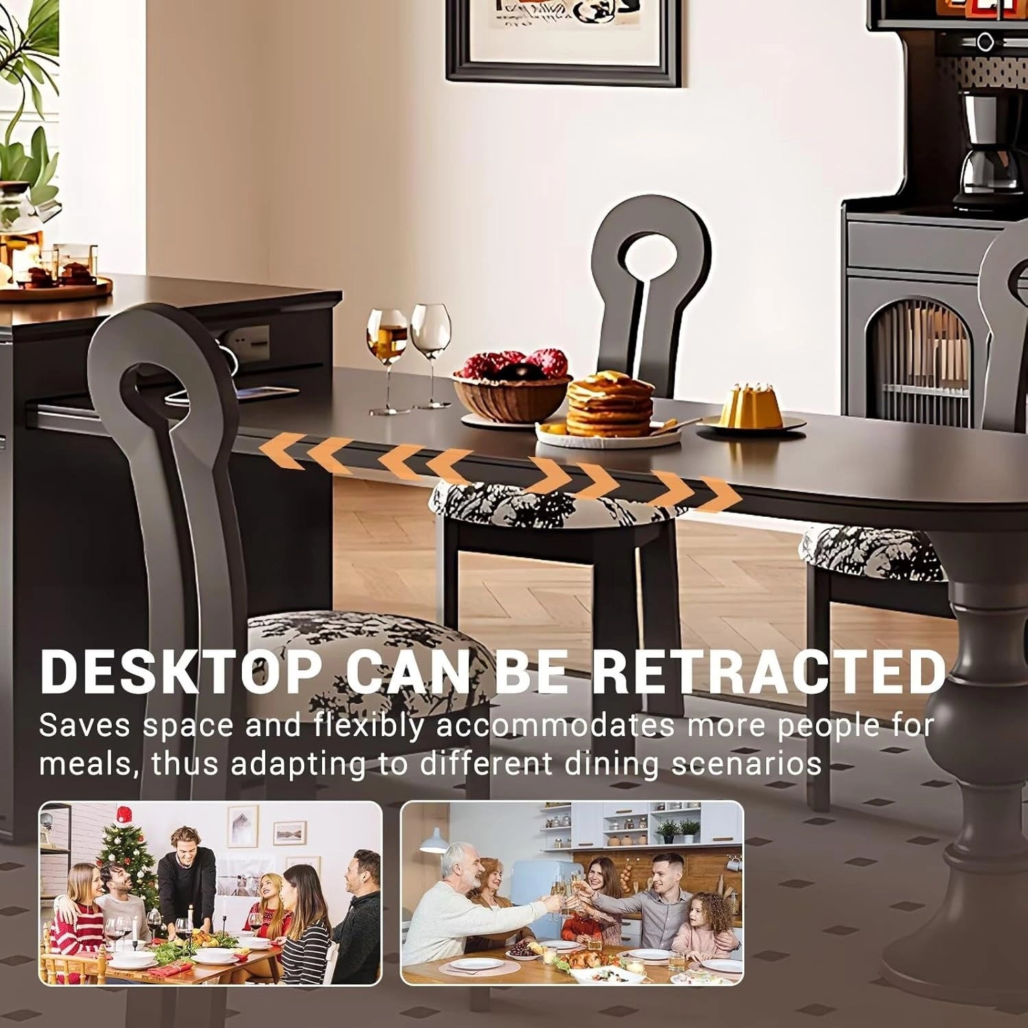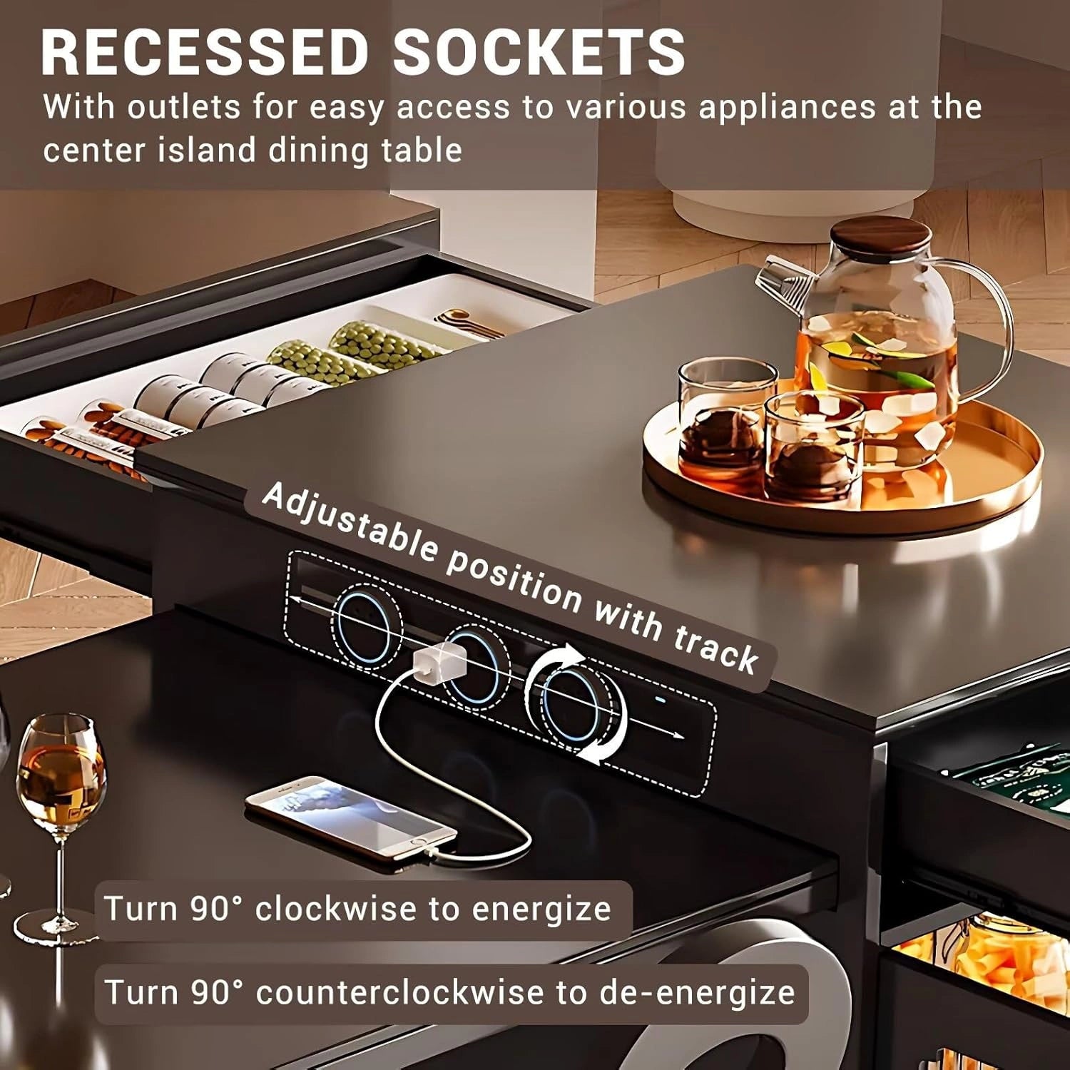 Thoughtful Details: The side of the island is equipped with power outlets for charging electronic devices, while also accommodating the use of other small appliances. The table edges are designed with smooth, rounded contours to prevent accidental collisions.