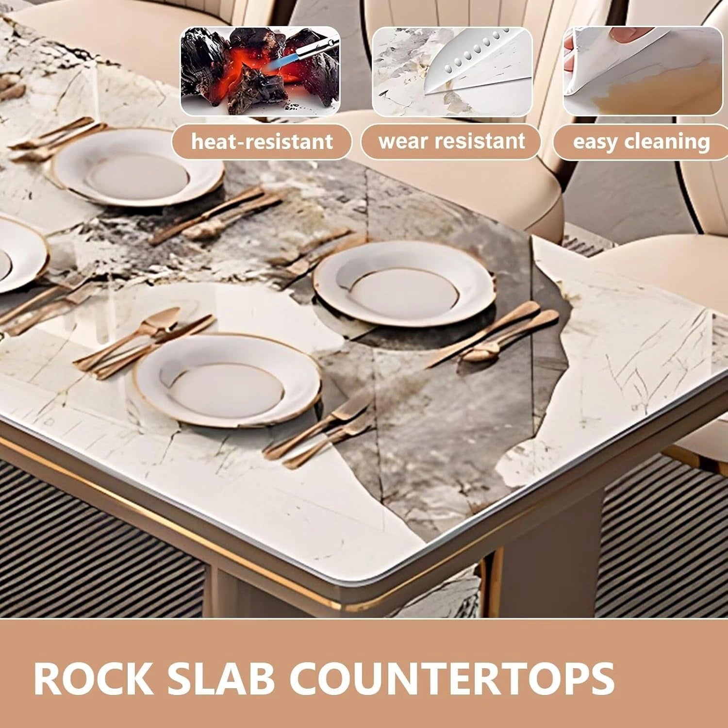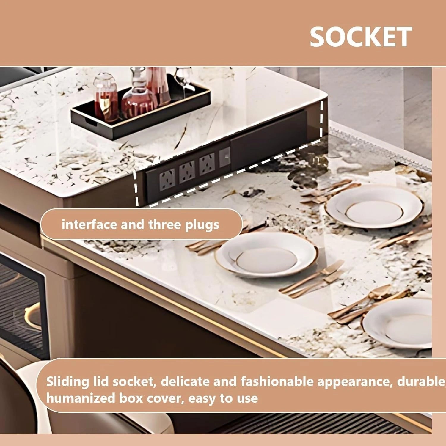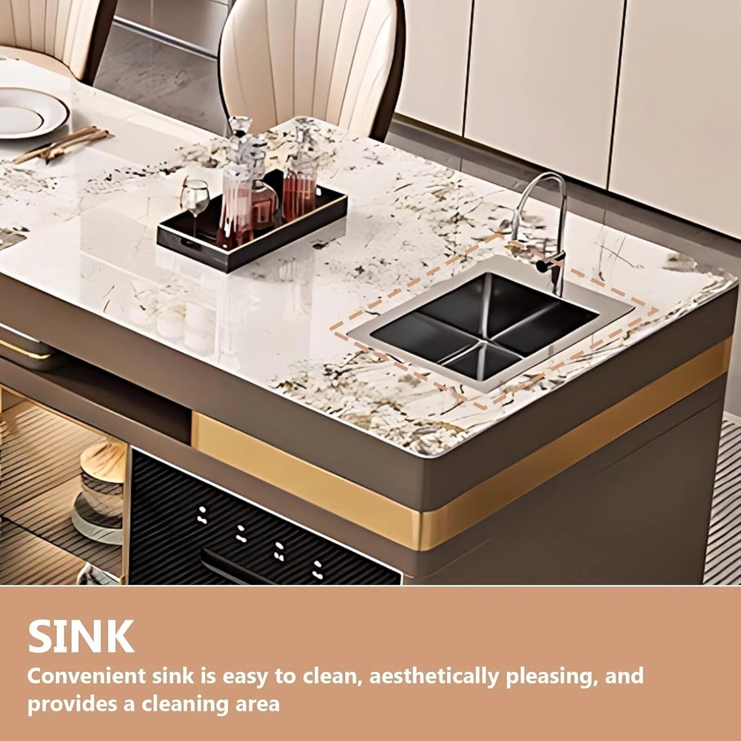 Exquisite Craftsmanship: The island counter and tabletop are crafted from the same premium rock slab for unbeatable durability and ultra-high hardness. The interior is solid wood-filled for long-lasting structural stability and longevity.