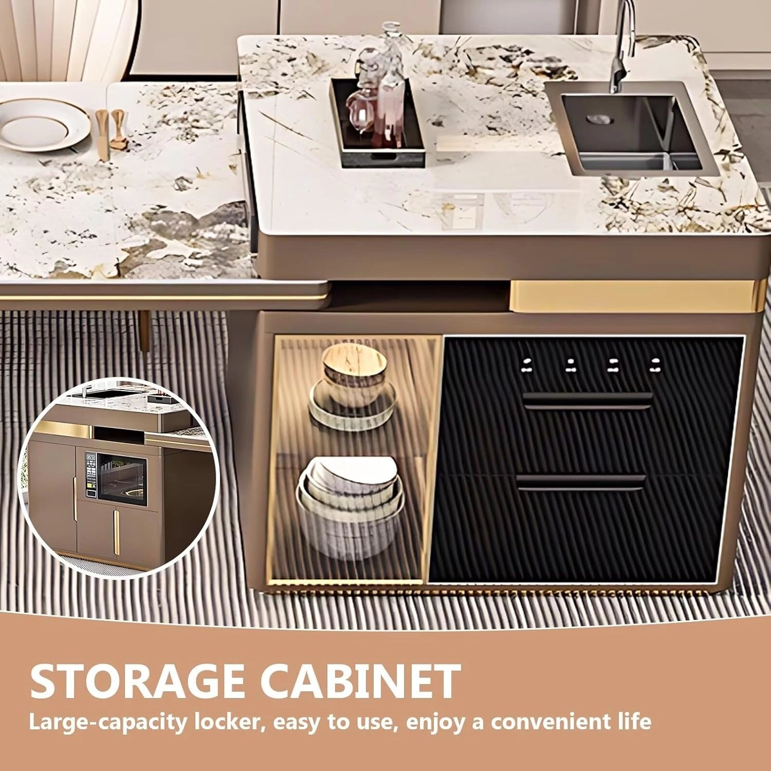 Smart & Practical Storage Design: Featuring spacious, visually transparent storage compartments and cabinets, it allows for easy and quick storage of pots, bowls, chopsticks, and more, ensuring ultimate convenience