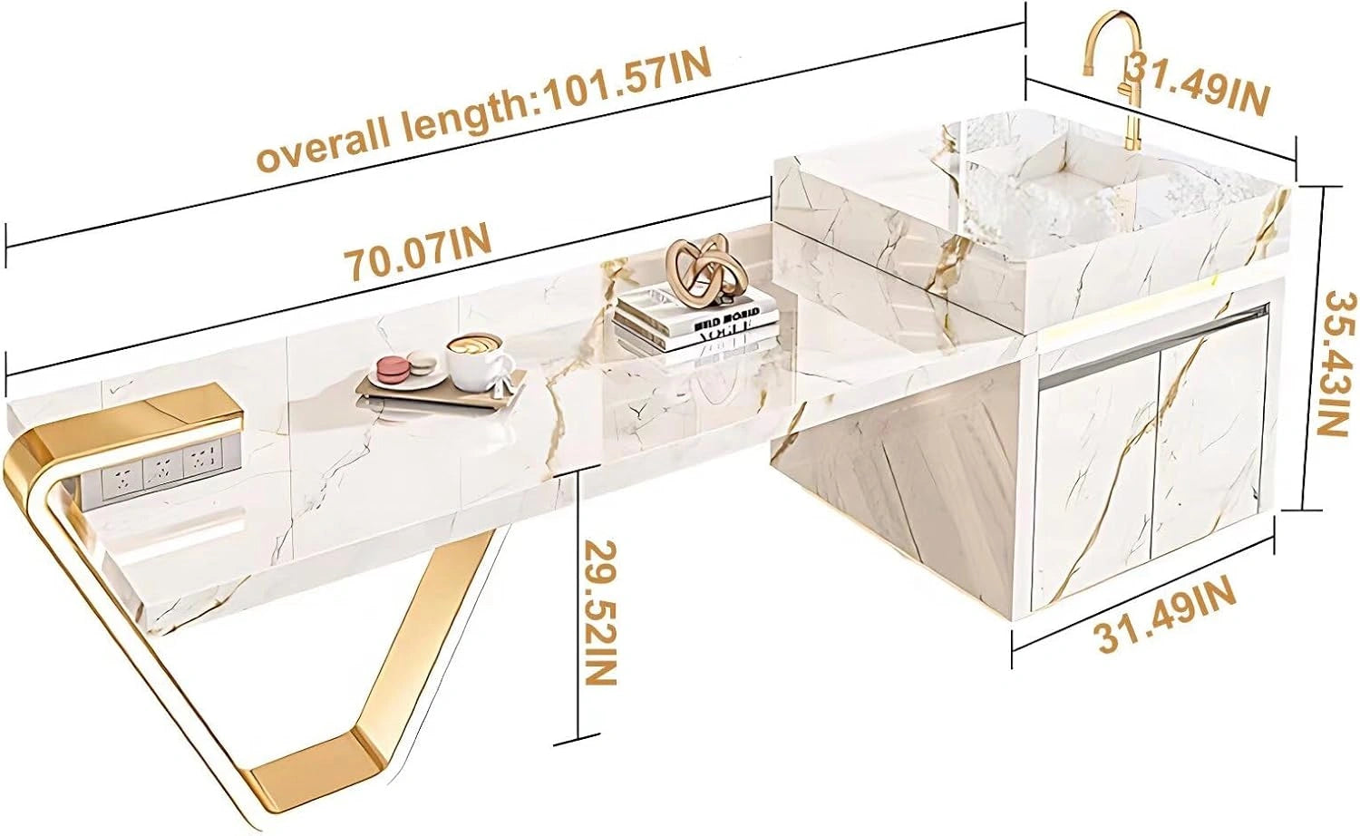 Ample Storage Solutions: The island has spacious cabinets, providing a very practical solution for storing essentials in your living space. The integrated deep sink makes cleaning easy