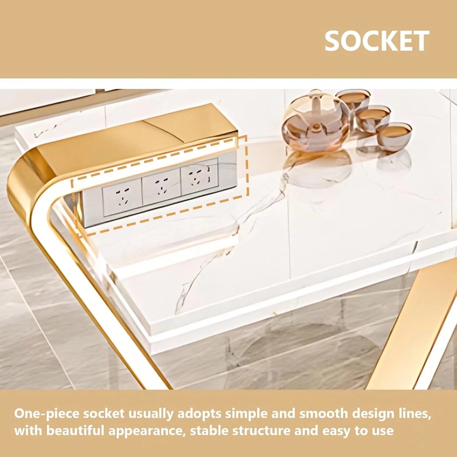 Attention to Detail: The desktop is carefully arranged with sockets for convenient use and charging of various devices. Integrated ambient lighting enhances the overall atmosphere and creates a warm atmosphere. Silent rails ensure smooth operation