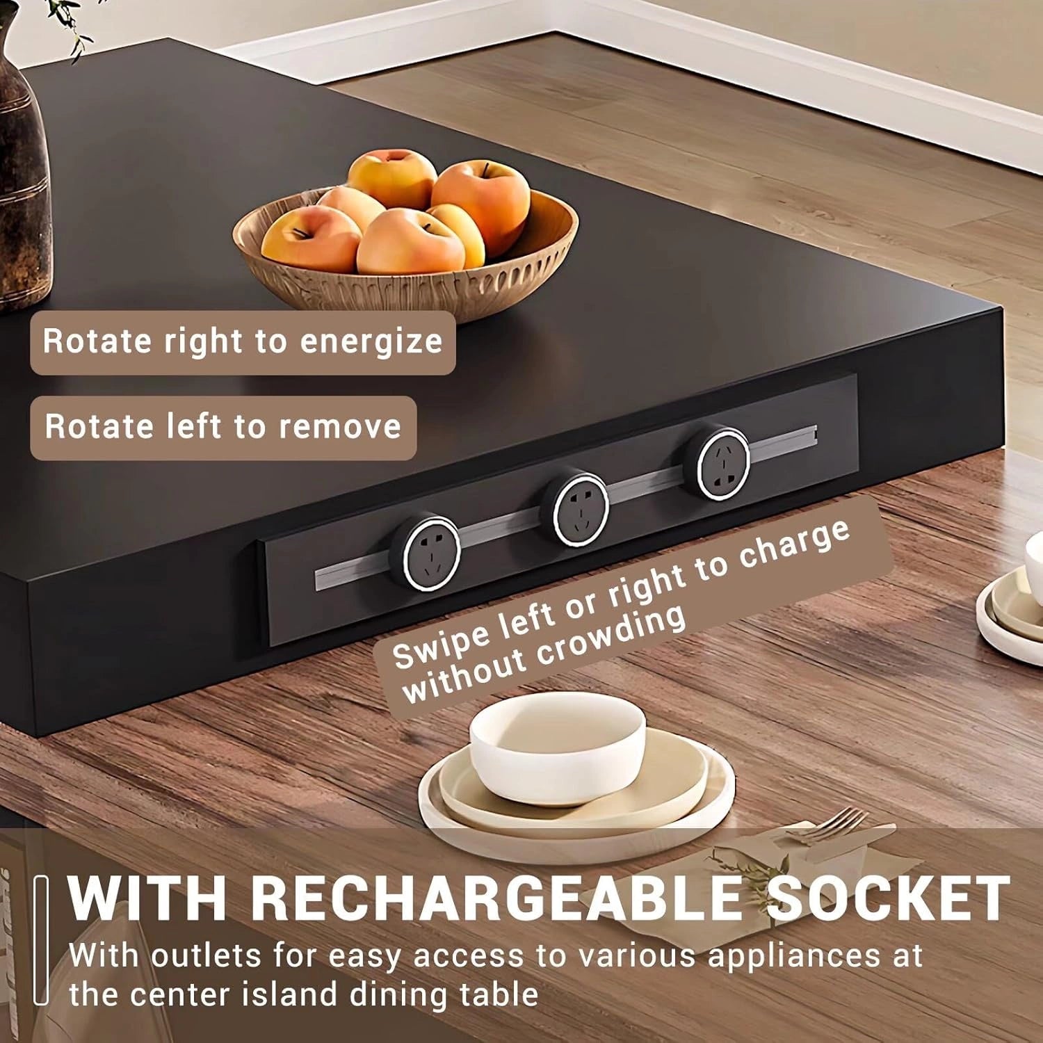 Beautiful Craftsmanship: Both the tabletop and island are crafted from solid slate, renowned for their excellent load-bearing capacity. A sturdy solid wood base under the dining table and inside the island ensures stable support.
