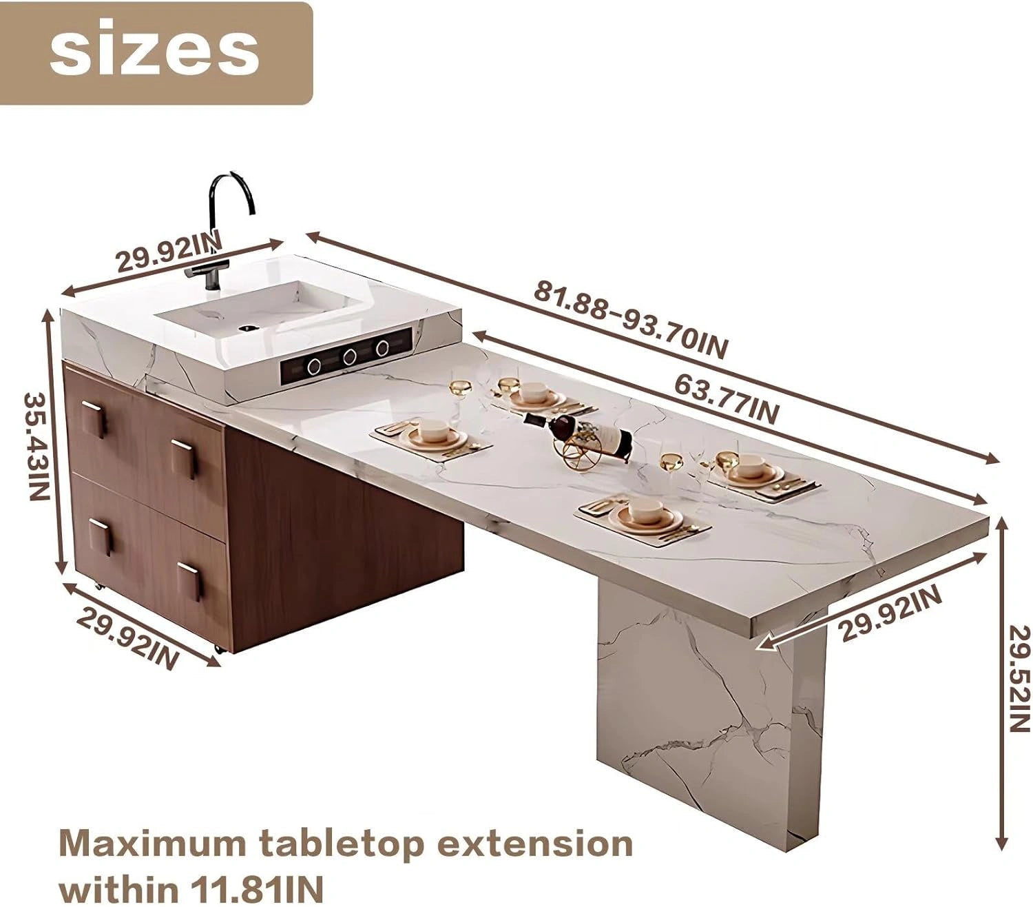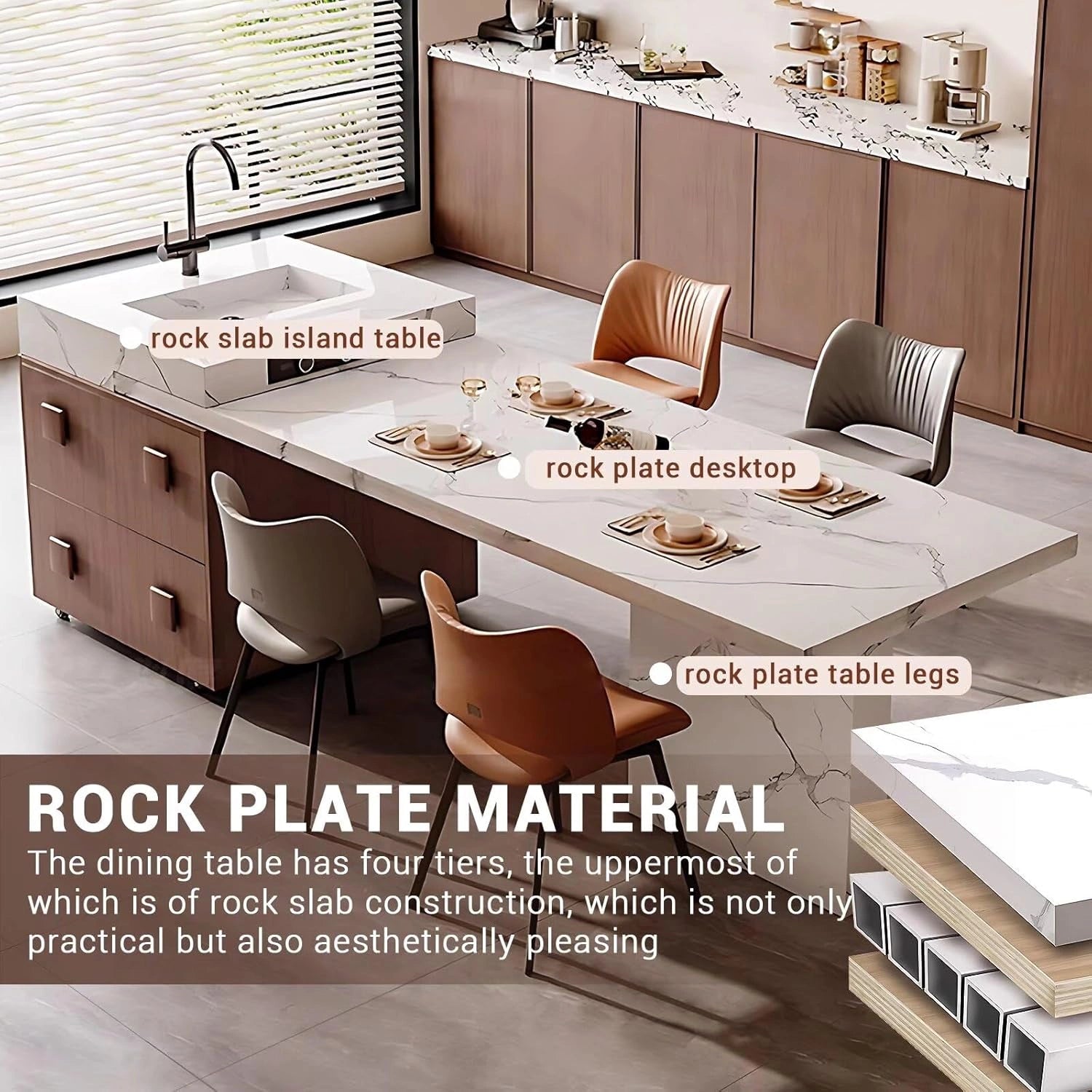 Exquisite Craftsmanship: The dining table, island countertop, and sink are carefully crafted from durable slate, reinforced with steel frames and solid wood for exceptional strength. The island cabinet is also meticulously made of solid wood.