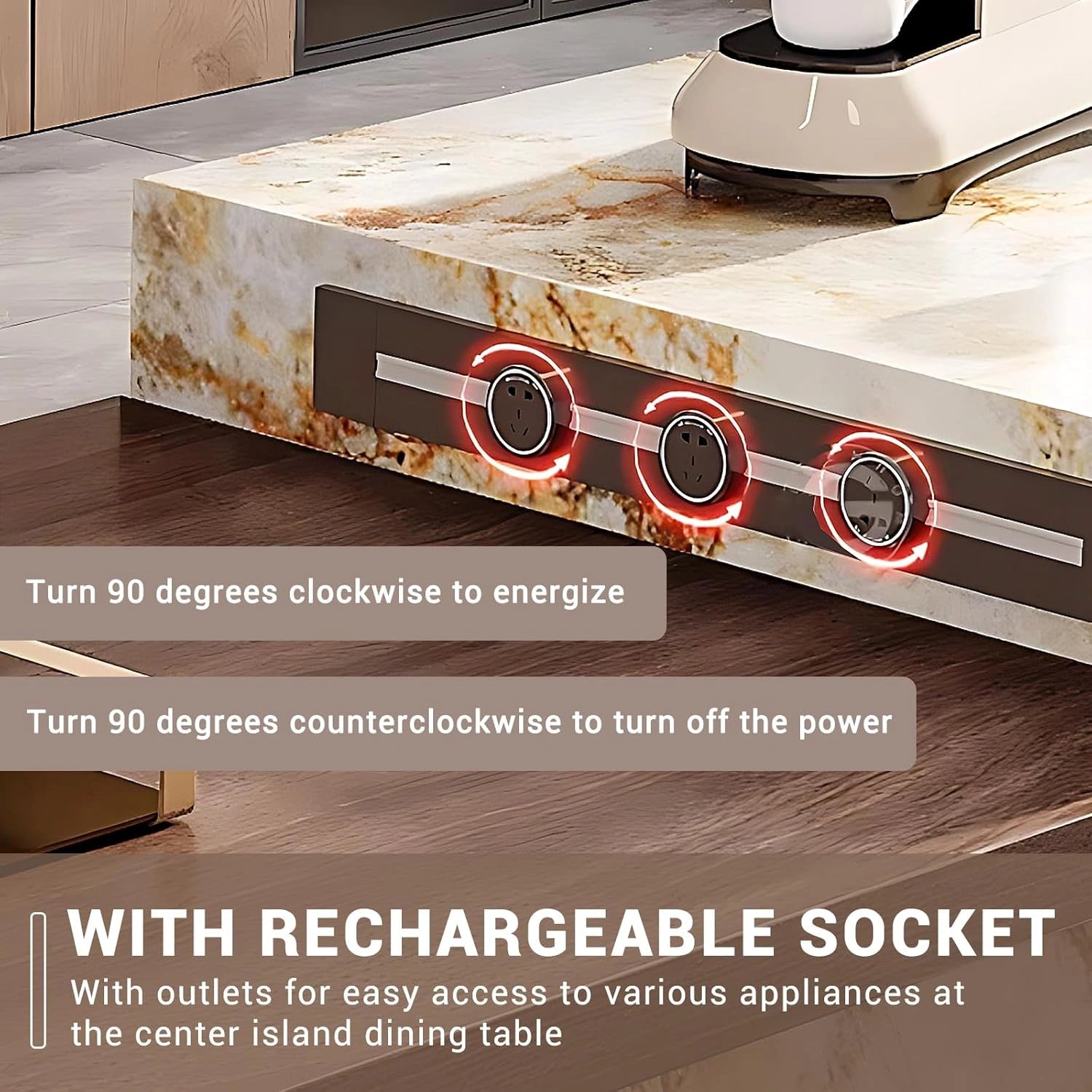 Rock Slab Structure: Both the table legs and island are constructed from sturdy rock slab, ensuring stable, durable support that enhances the safety of placed items. Rock slab is renowned for its easy-to-clean surface and sleek, fashionable aesthetic.