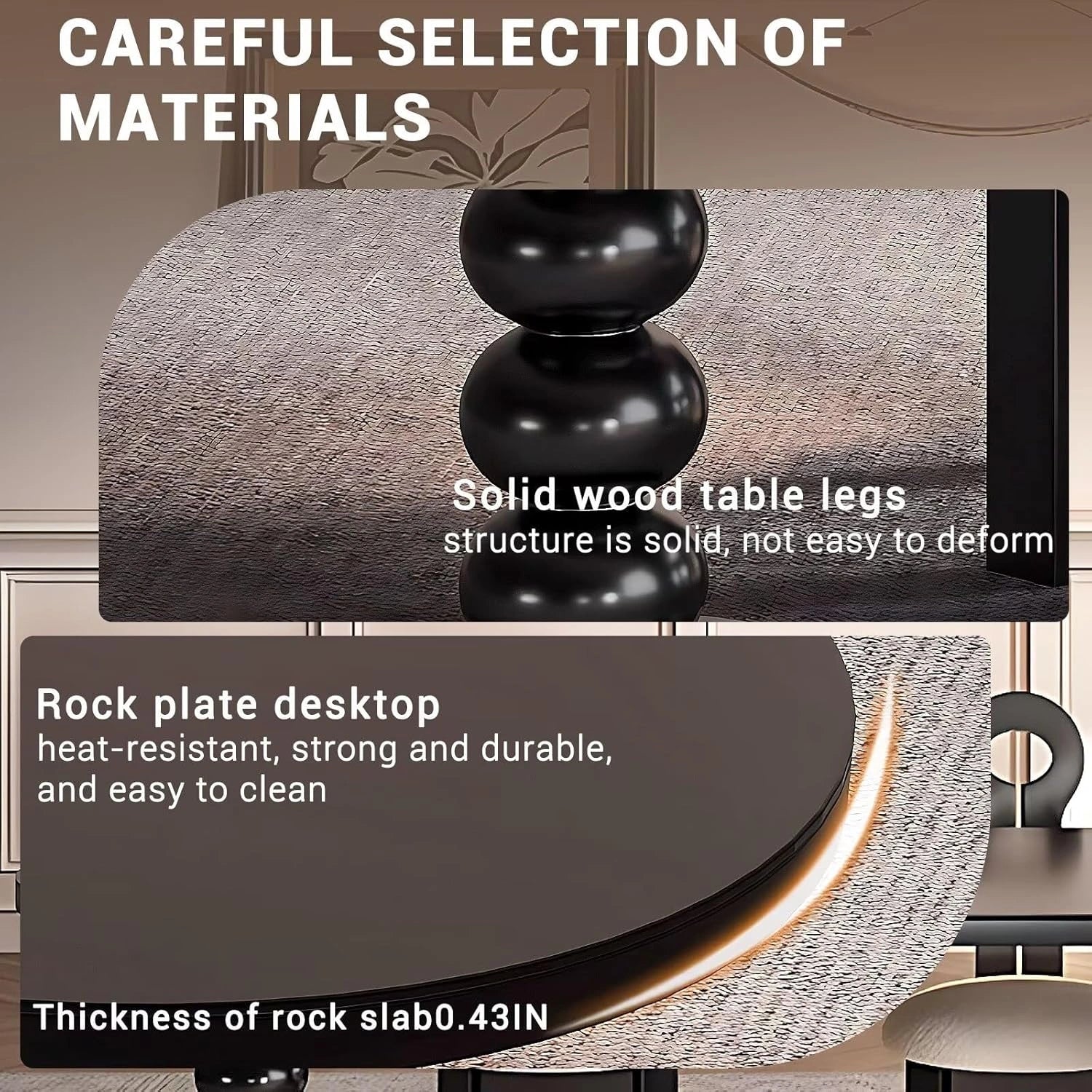 Exquisite Craftsmanship: Combining rock slabs with solid wood tabletops, this piece features a wear-resistant finish for long-lasting use. The cabinets are handcrafted from premium solid wood and coated with high-quality paint for enhanced durability. Boasting a robust, sturdy structure, it ensures reliable longevity and consistent performance over time.