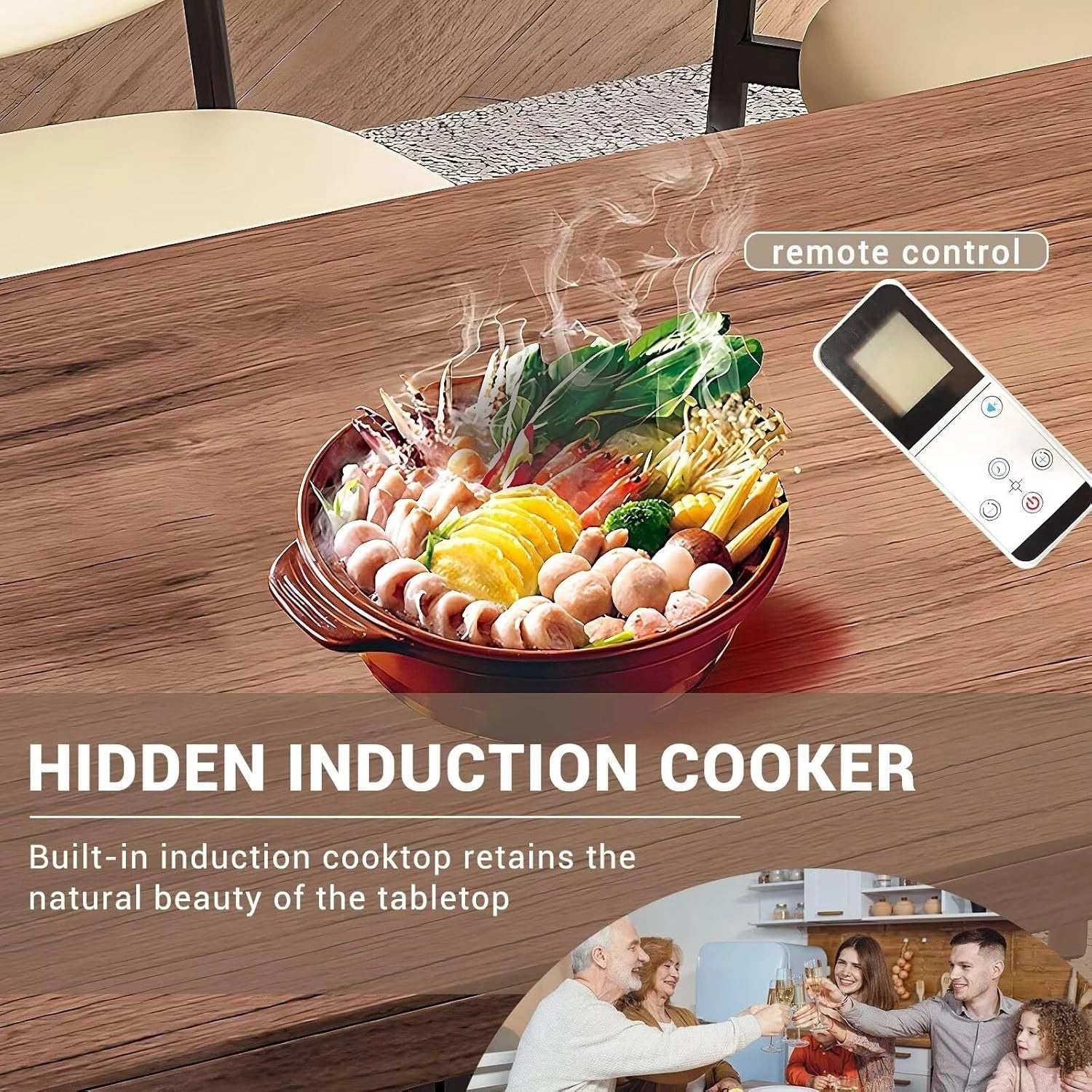 Multifunctional: This desk hides an induction cooker for a fluid cooking experience. With a track socket, you can also easily charge your electronic devices.A combination of practicality and ease of use, you're dining experience will never be the same!