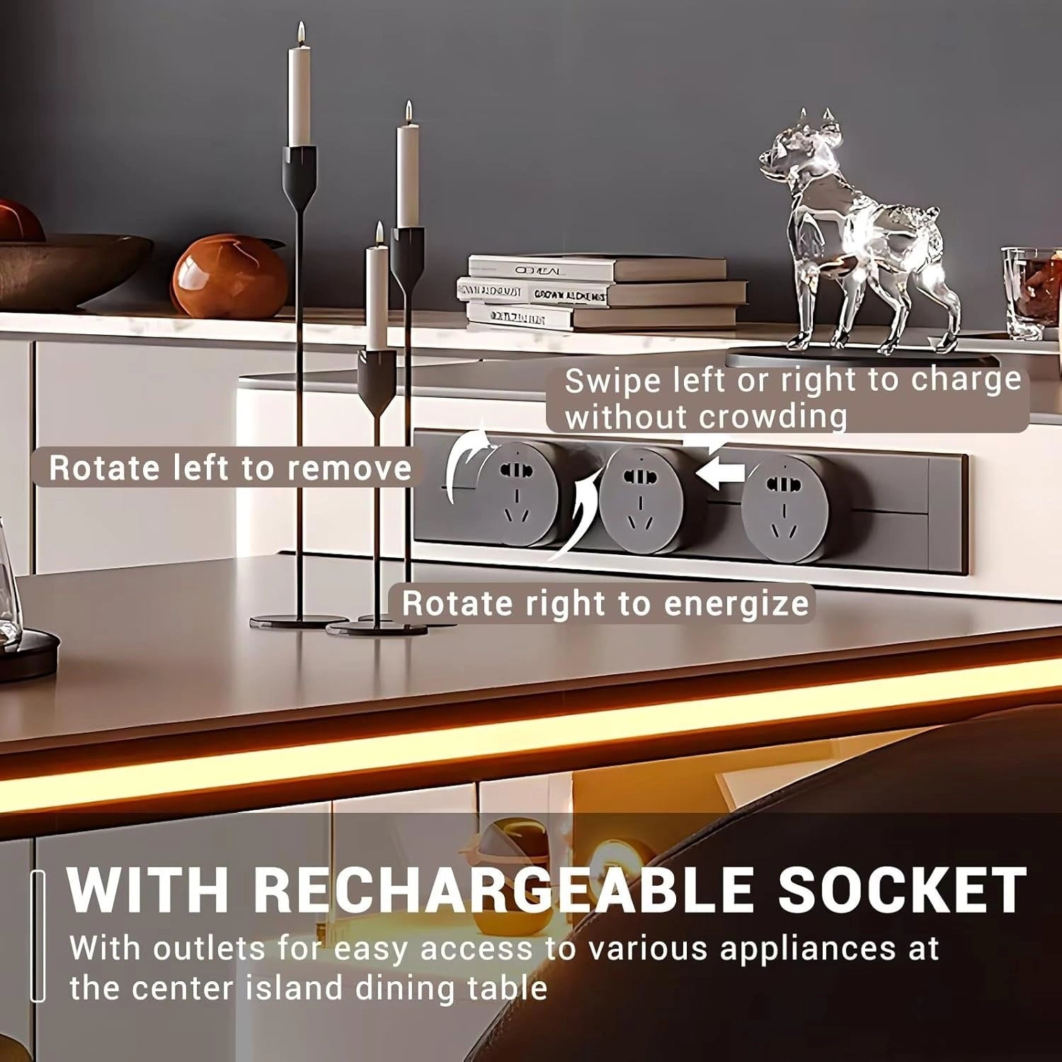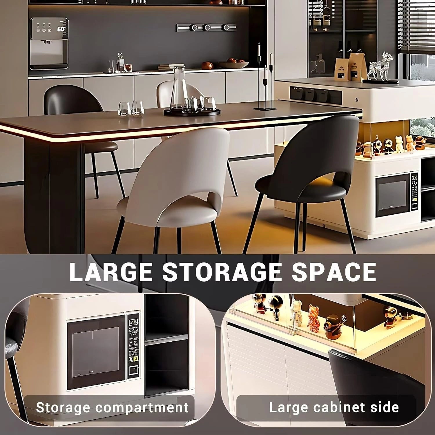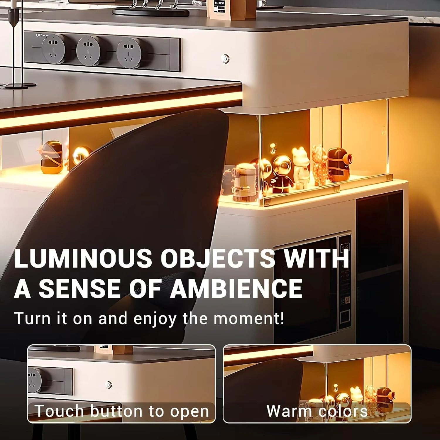 Multifunctional Features: The island integrates smart ambient lighting—with just a gentle touch, it instantly transforms your space into a cozy, warm atmosphere. It also comes with convenient built-in sockets, allowing you to effortlessly charge your electronic devices.