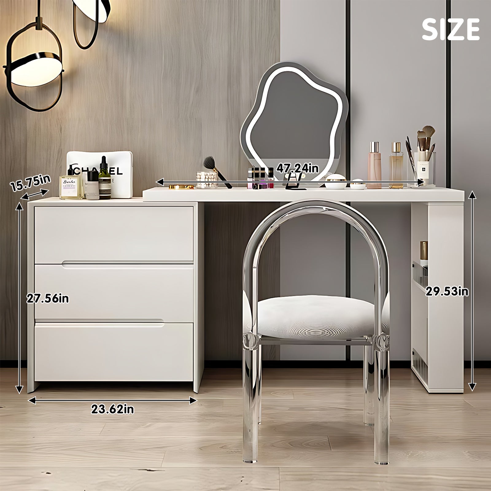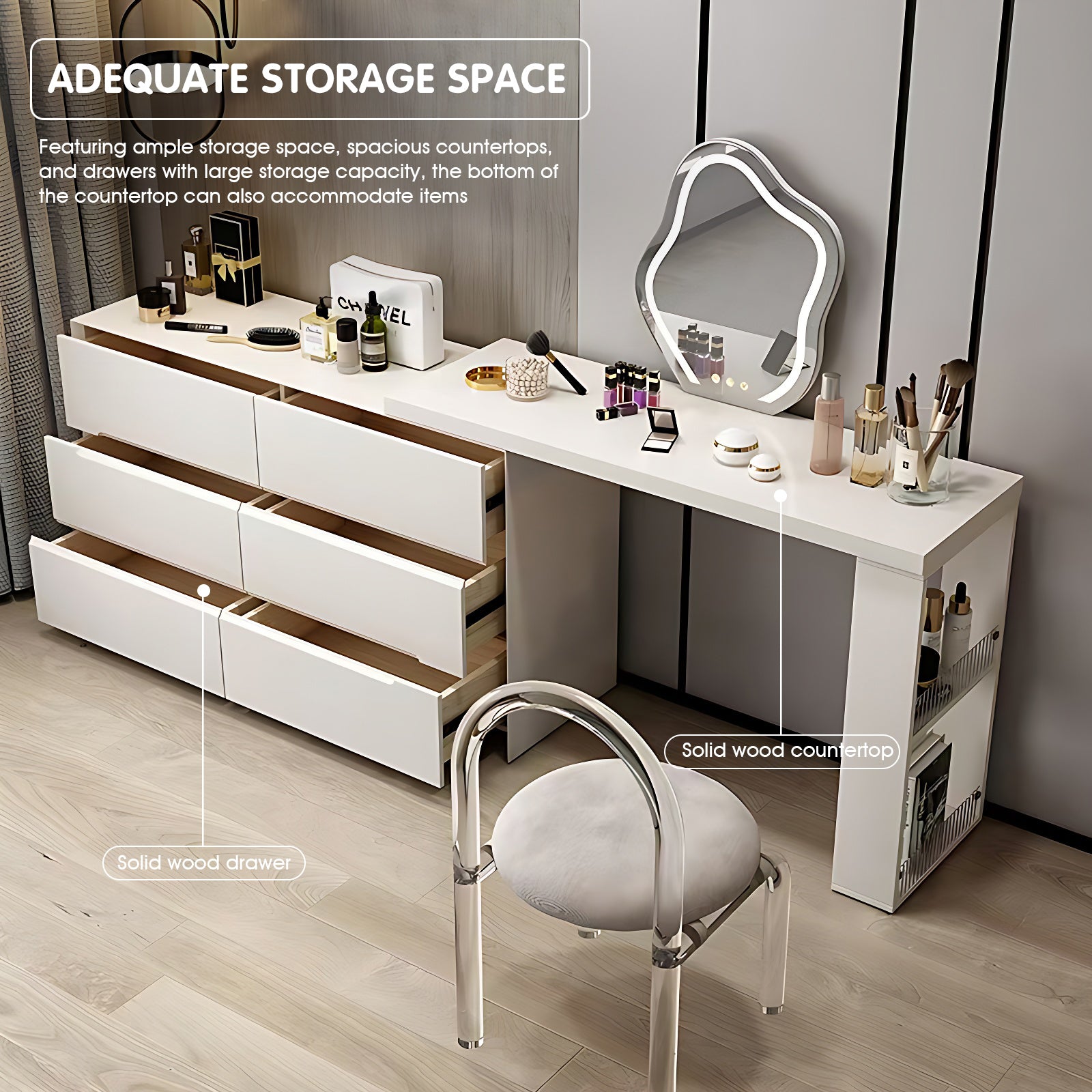 Telescopic Cabinet: This vanity set features a telescopic cabinet design, perfect for small spaces. Expand it when in use and retract it to save space. It's a great solution for apartments or compact bedrooms.