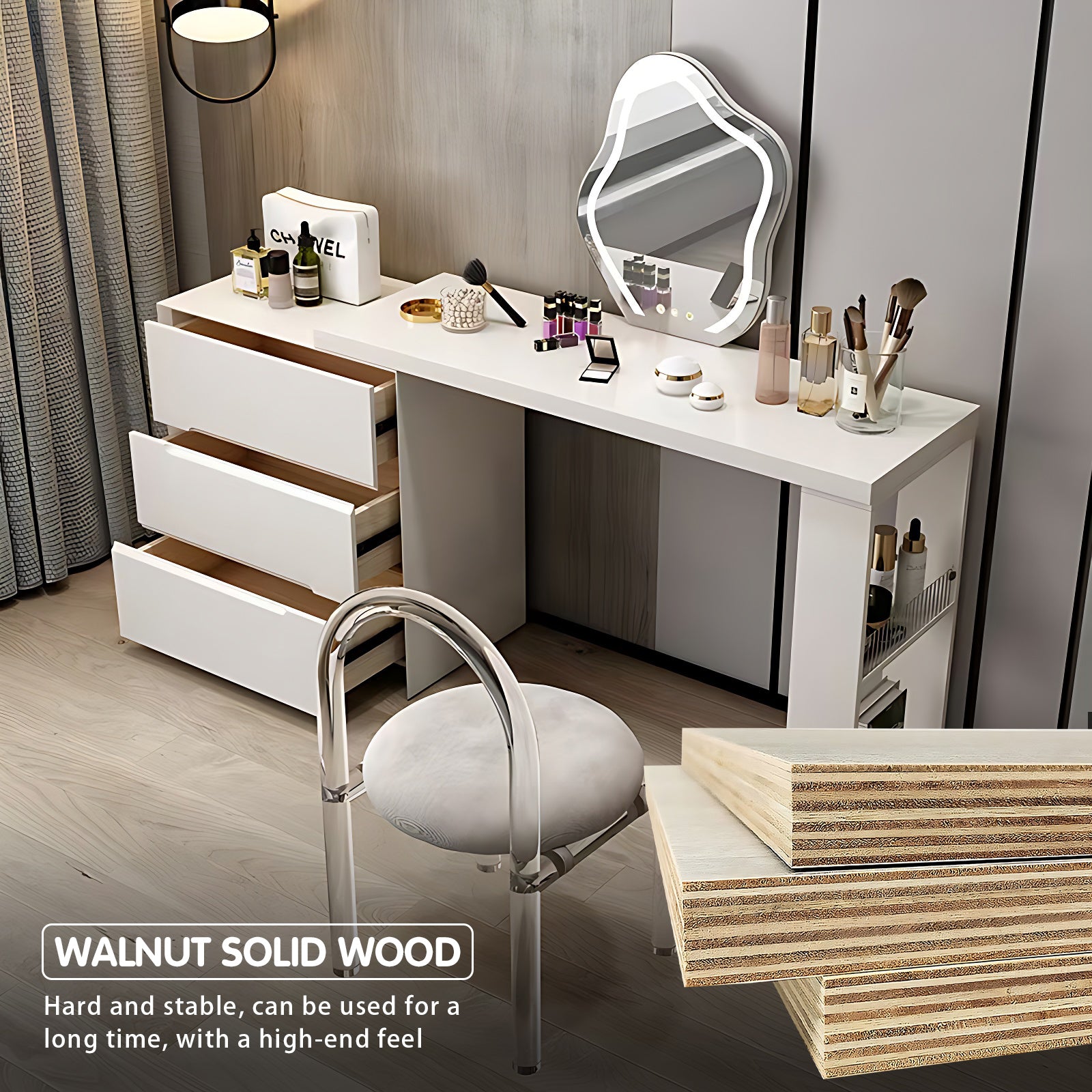 Smart Storage: With smart partitioning, the vanity set offers comprehensive storage. Multiple drawers and compartments are designed to neatly organize all your makeup, brushes, jewelry, and beauty essentials, keeping everything within easy reach.