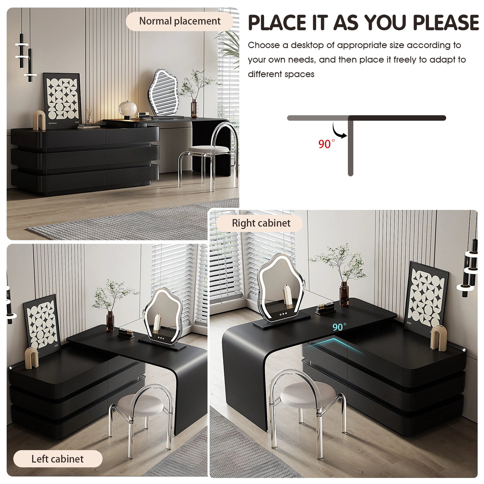 Extendable & Rotatable Design: The vanity’s extendable structure allows for flexible positioning, while the rotatable section lets you customize the setup to fit your space effortlessly.
