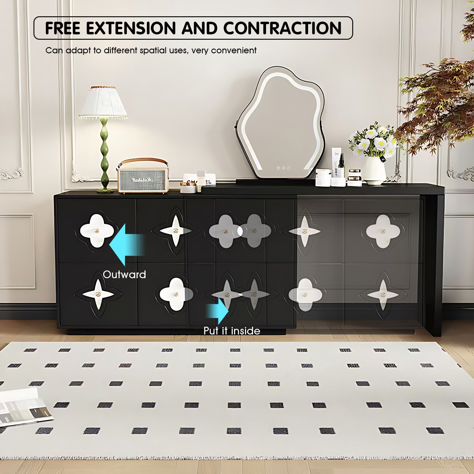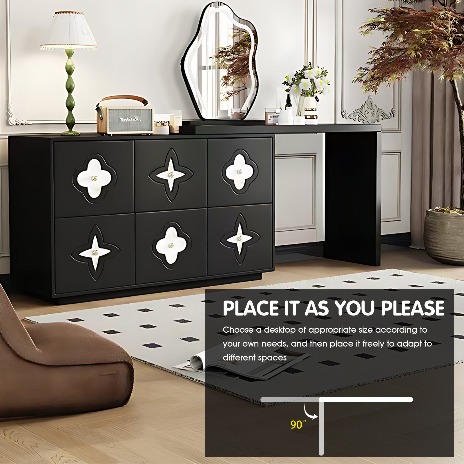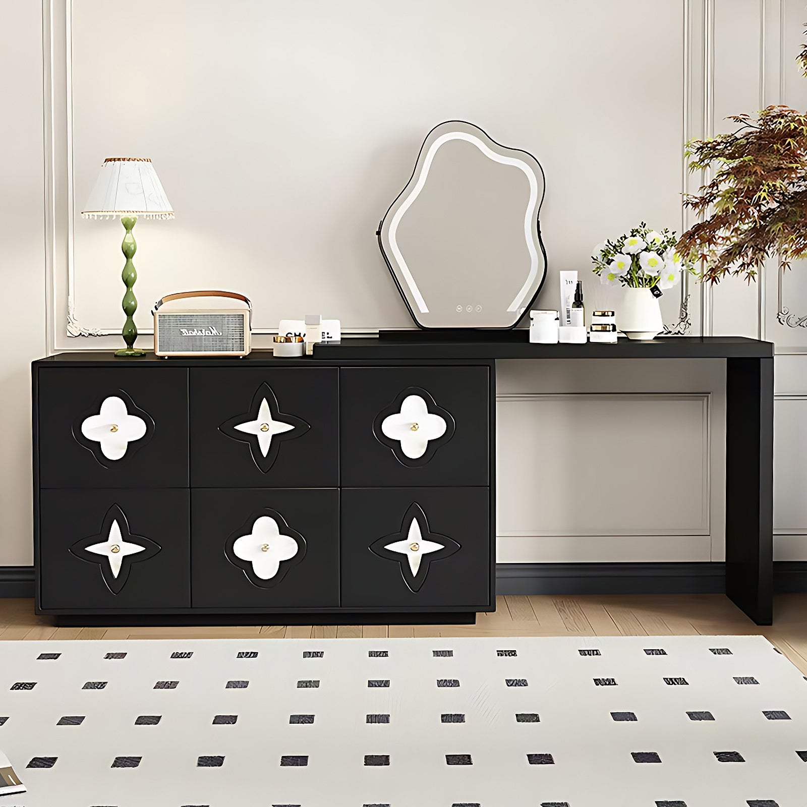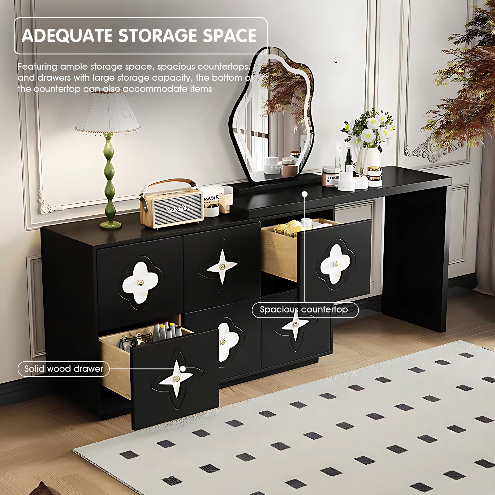 Floral Pattern Decoration: The vanity is adorned with beautiful floral patterns on the drawers, adding an artistic and feminine touch. These patterns not only enhance the visual appeal but also make the vanity a decorative element in the space.