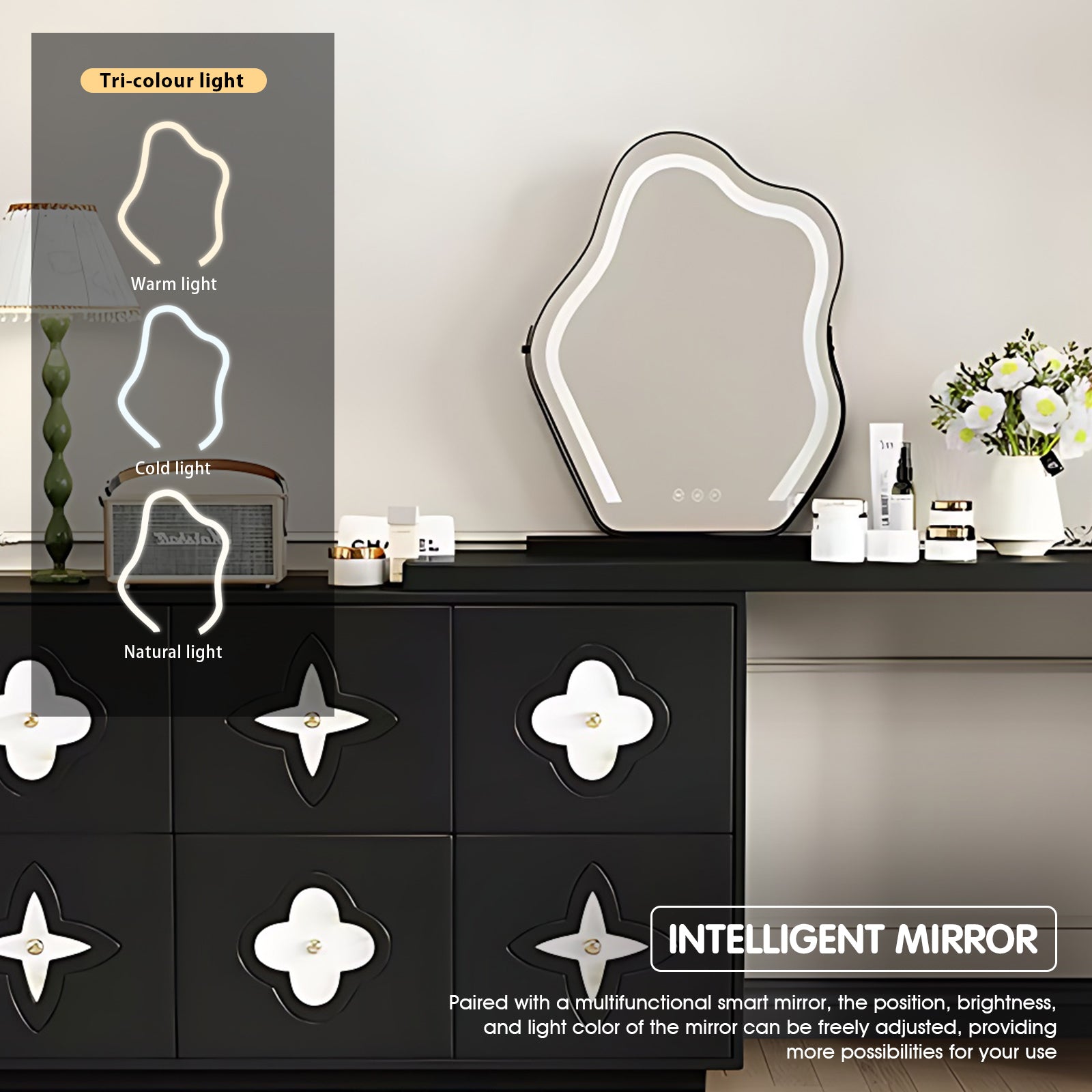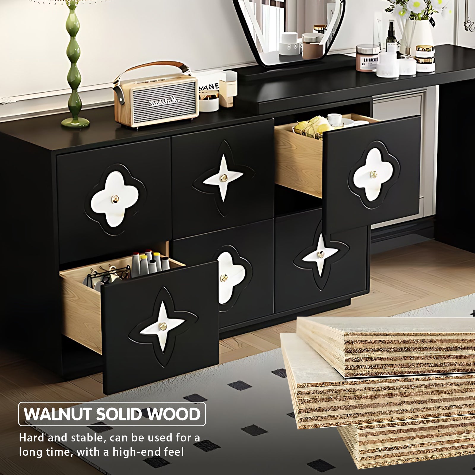 Premium Solid Wood: Crafted from high-quality solid wood, ensuring durability and a natural aesthetic. It provides a sturdy base that can withstand daily use and adds a touch of elegance to the makeup vanity.