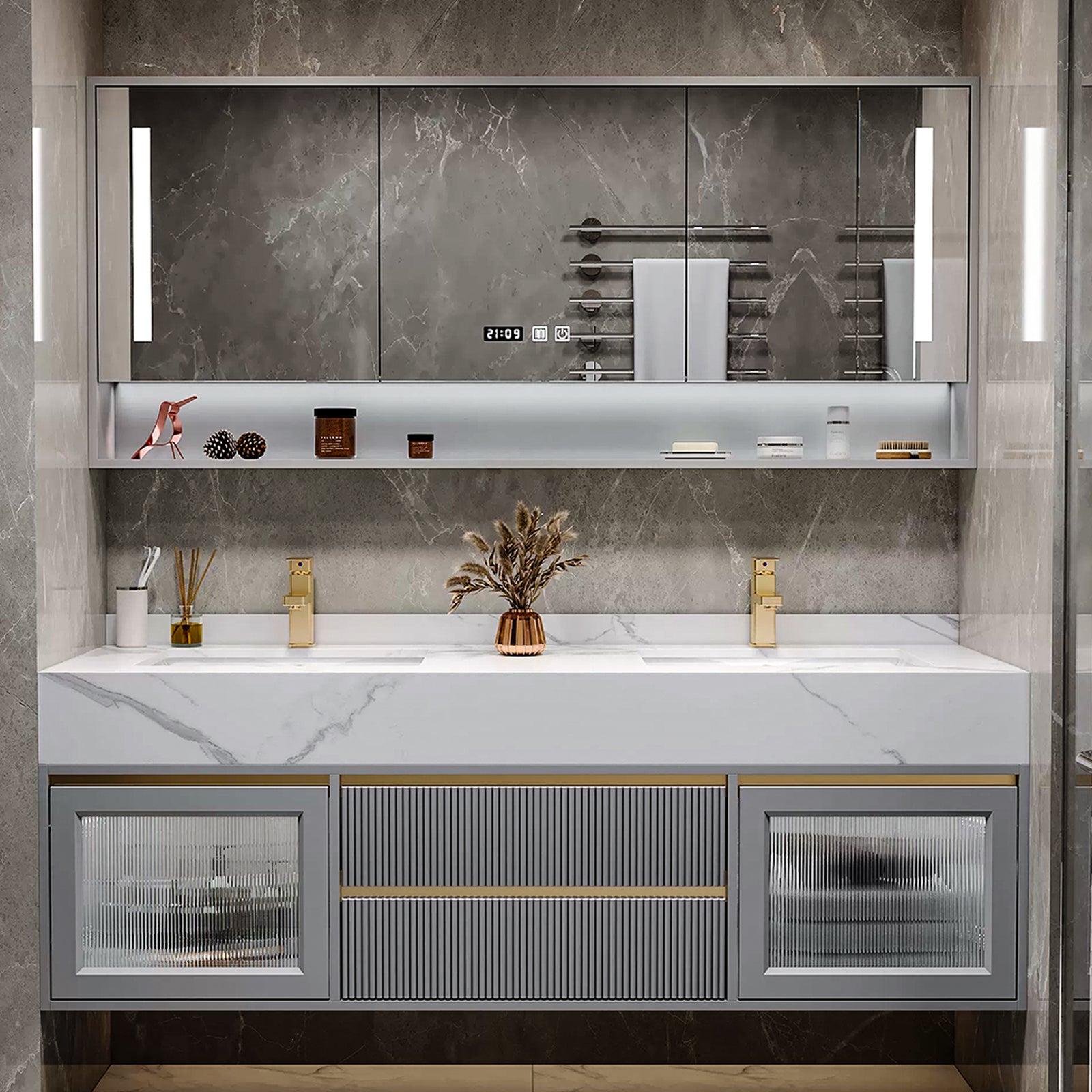 LED Defogging Mirror Cabinet: Experience the convenience of our smart mirror cabinet equipped with LED defogging technology. Say goodbye to foggy mirrors after hot showers – the built-in LED defogger ensures clear visibility, making your morning routine seamless and enjoyable.