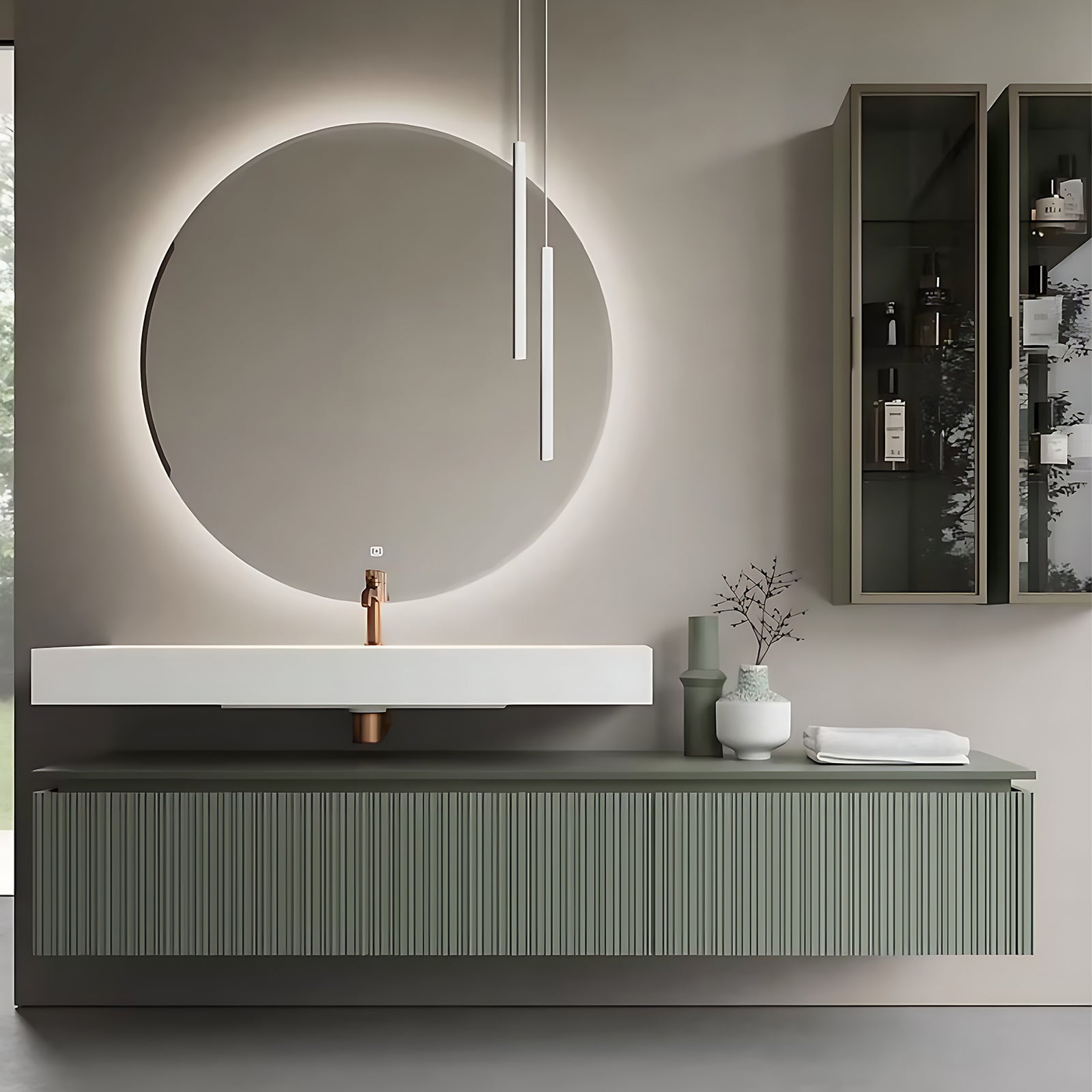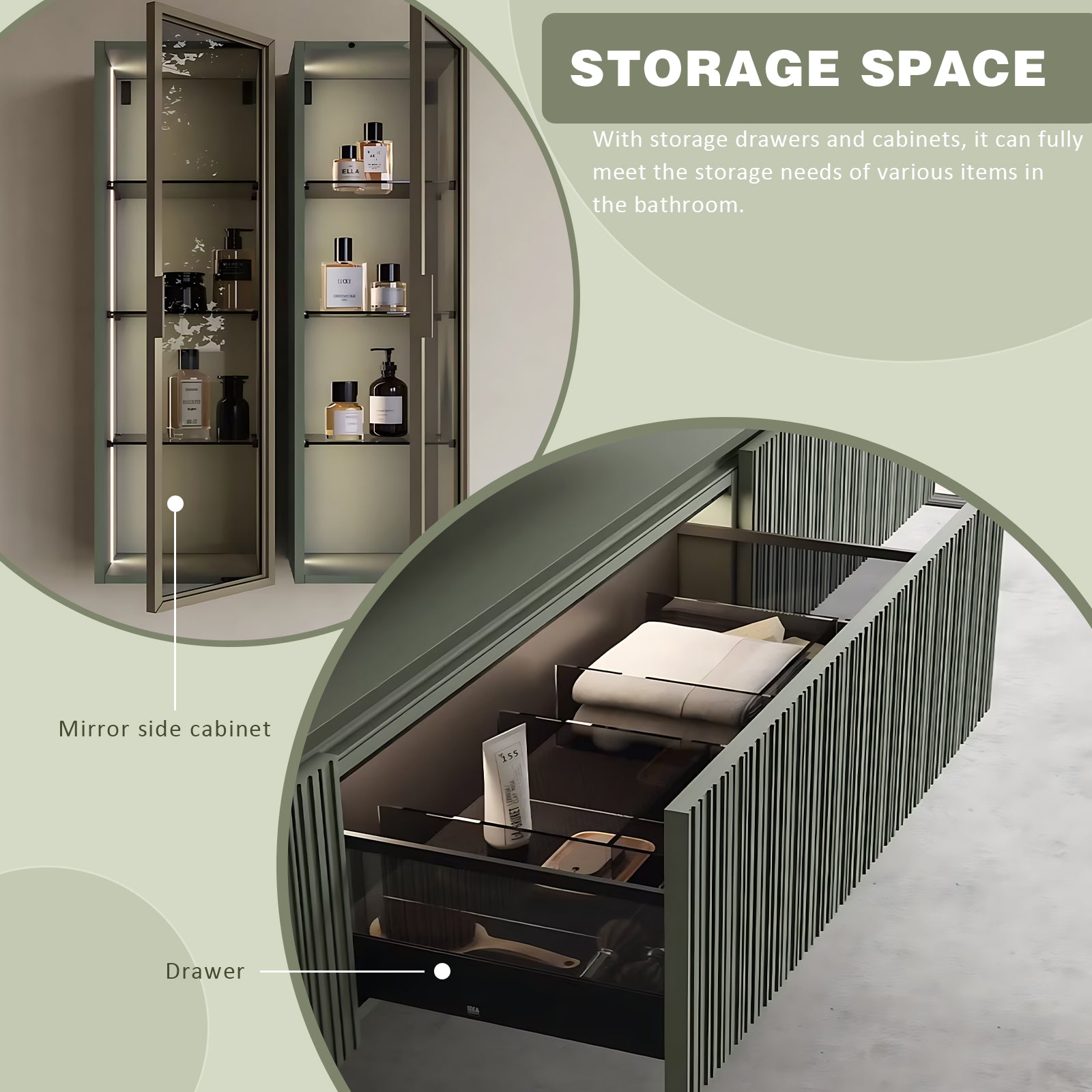 Smart Mirror Integration: Featuring a smart mirror with adjustable lighting and anti-fog technology, this vanity adds modern convenience to your routine.