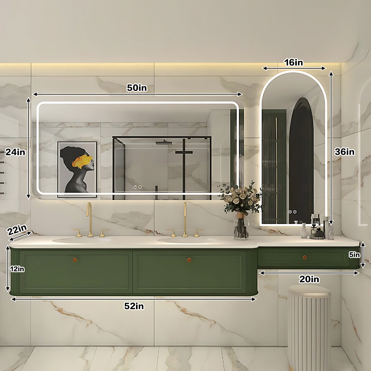 Intelligent Mirror Dual Configuration: The washing area is equipped with a high-definition mirror to meet the daily washing and skin care needs, and the dressing table area is equipped with a special makeup mirror to provide more delicate lighting and magnification effects, making washing and makeup more efficient and convenient to meet diverse life needs.