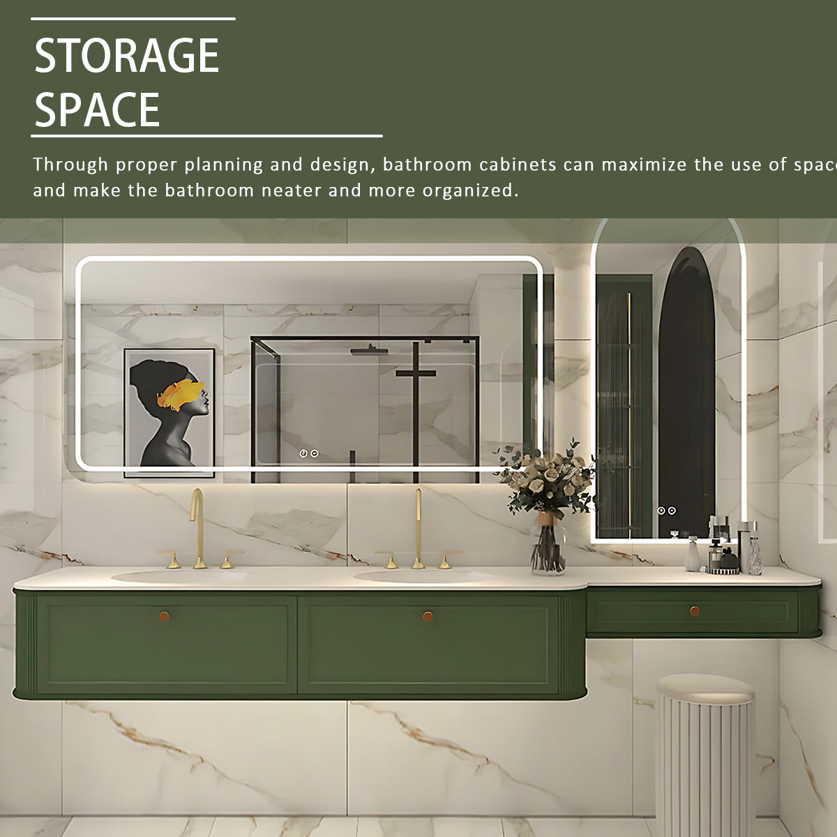 Efficient Storage Layout: Hidden drawers, open compartments and top mirror cabinets are cleverly combined to form a multi-level storage space to achieve item classification management. Hidden drawers can store personal belongings and keep the countertop clean; reasonable space planning improves the overall aesthetics and makes the bathroom more tidy and orderly.