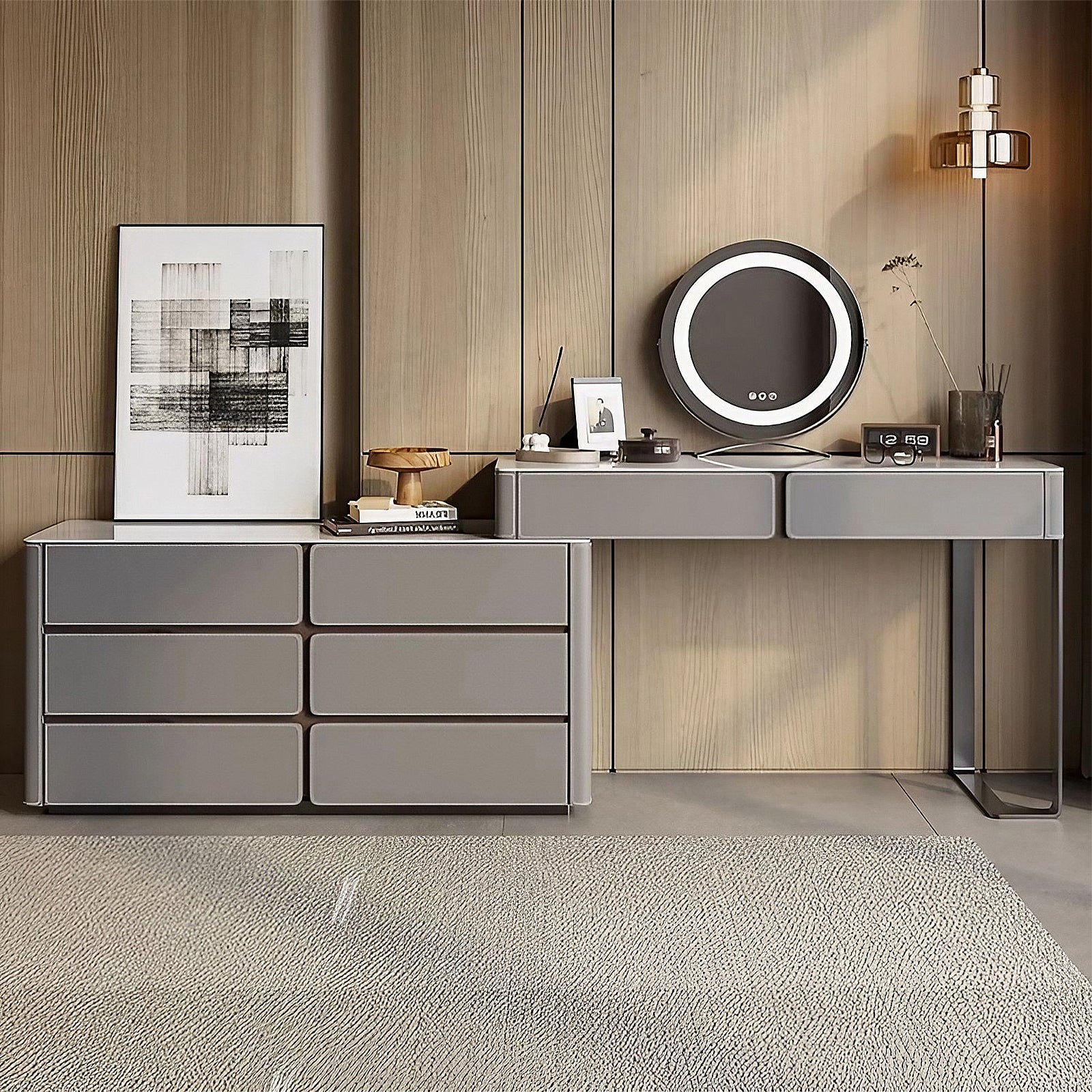 Large Capacity Storage: This vanity is equipped with spacious drawers to store your beauty essentials, offering organized storage while keeping your space clutter-free.