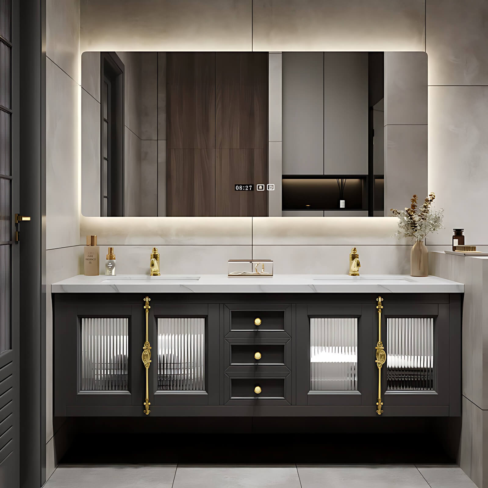 High Quality Living Atmosphere: This bathroom dressing table showcases a strong high-end living atmosphere in front of you, with a calm color scheme and design, complemented by metal accessories. The overall appearance is more textured.