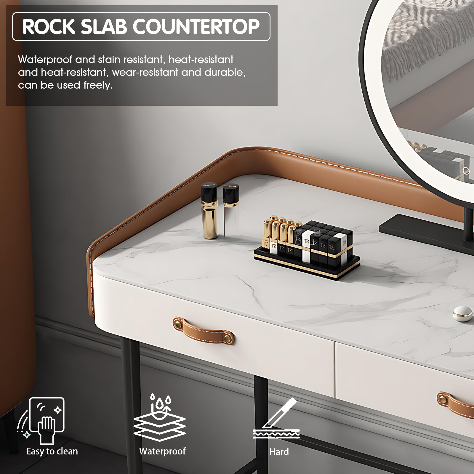 Premium Leather-Wrapped Finish: Crafted with high-quality leather accents, this vanity exudes elegance and durability. The soft-touch material adds a sophisticated feel while protecting against scratches and wear.