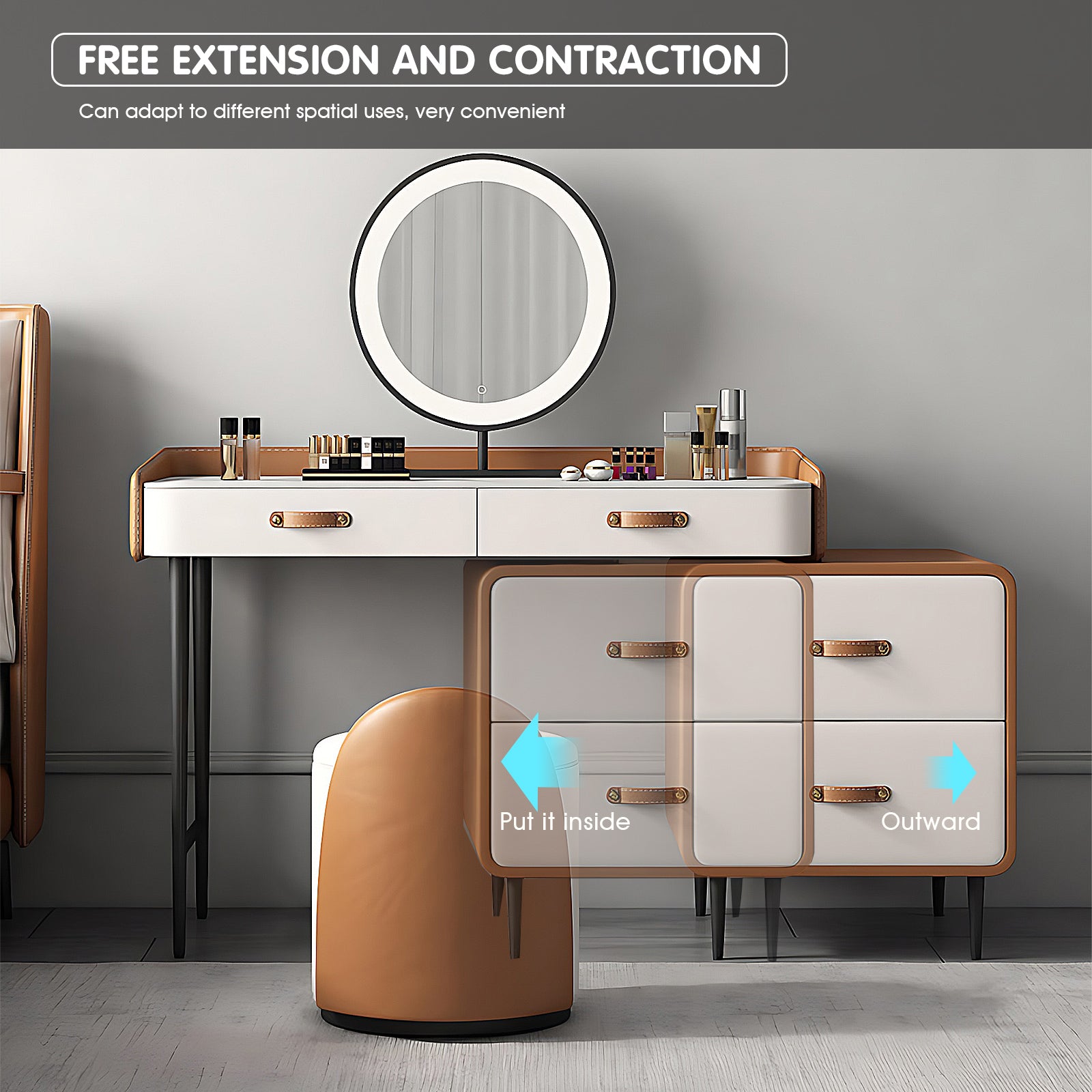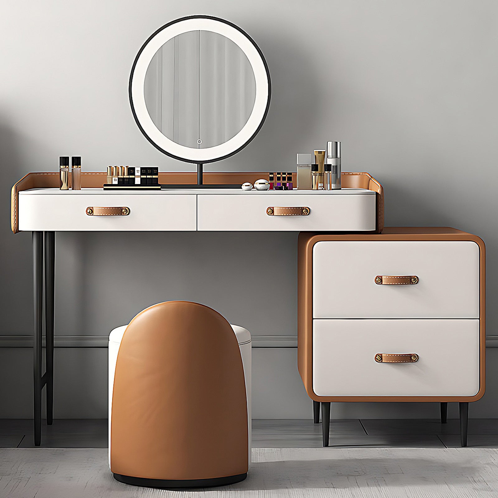 Modern Two-Tone Design: Featuring a stylish blend of neutral beige and warm caramel tones, this vanity complements both contemporary and classic interiors, adding a refined touch to any bedroom or dressing area.
