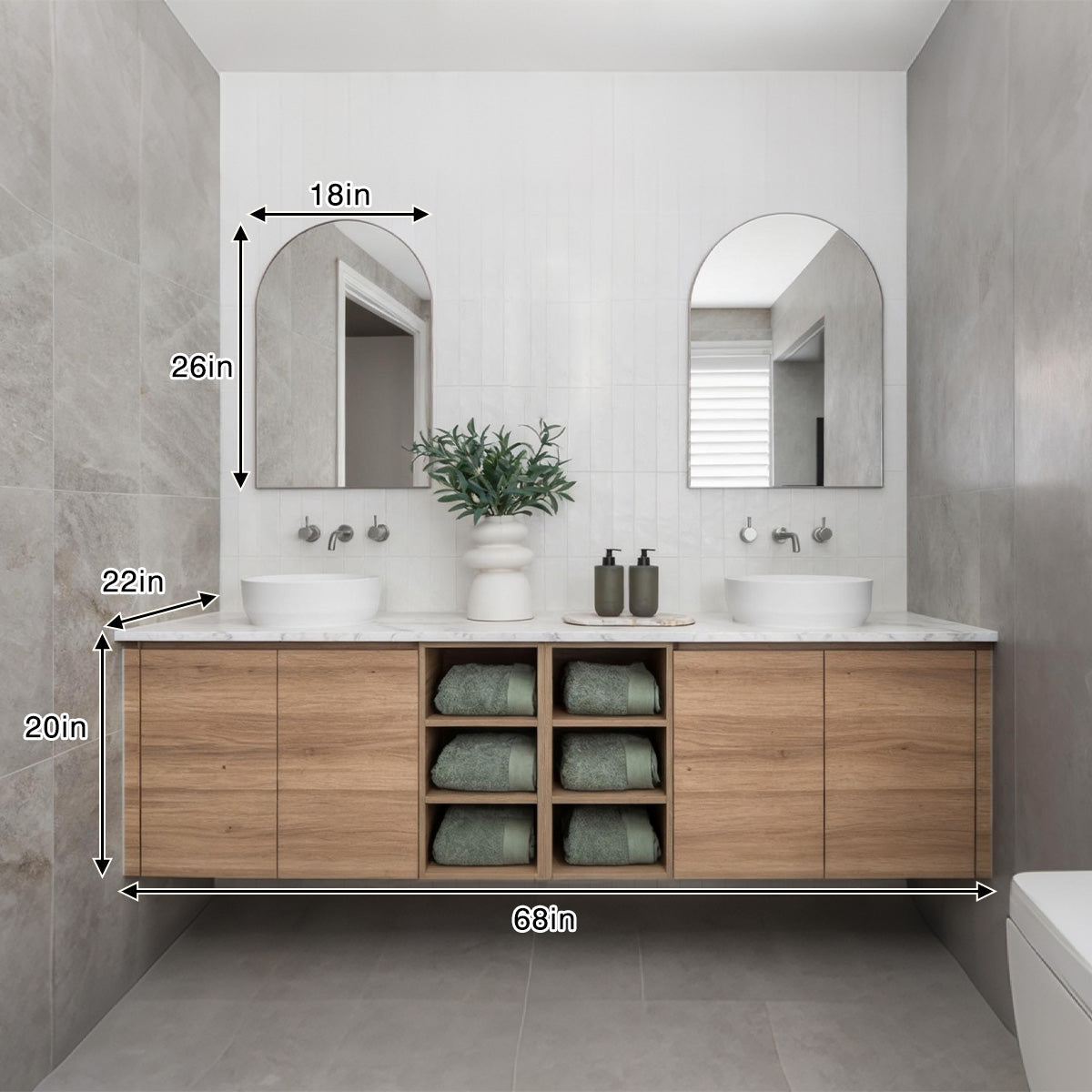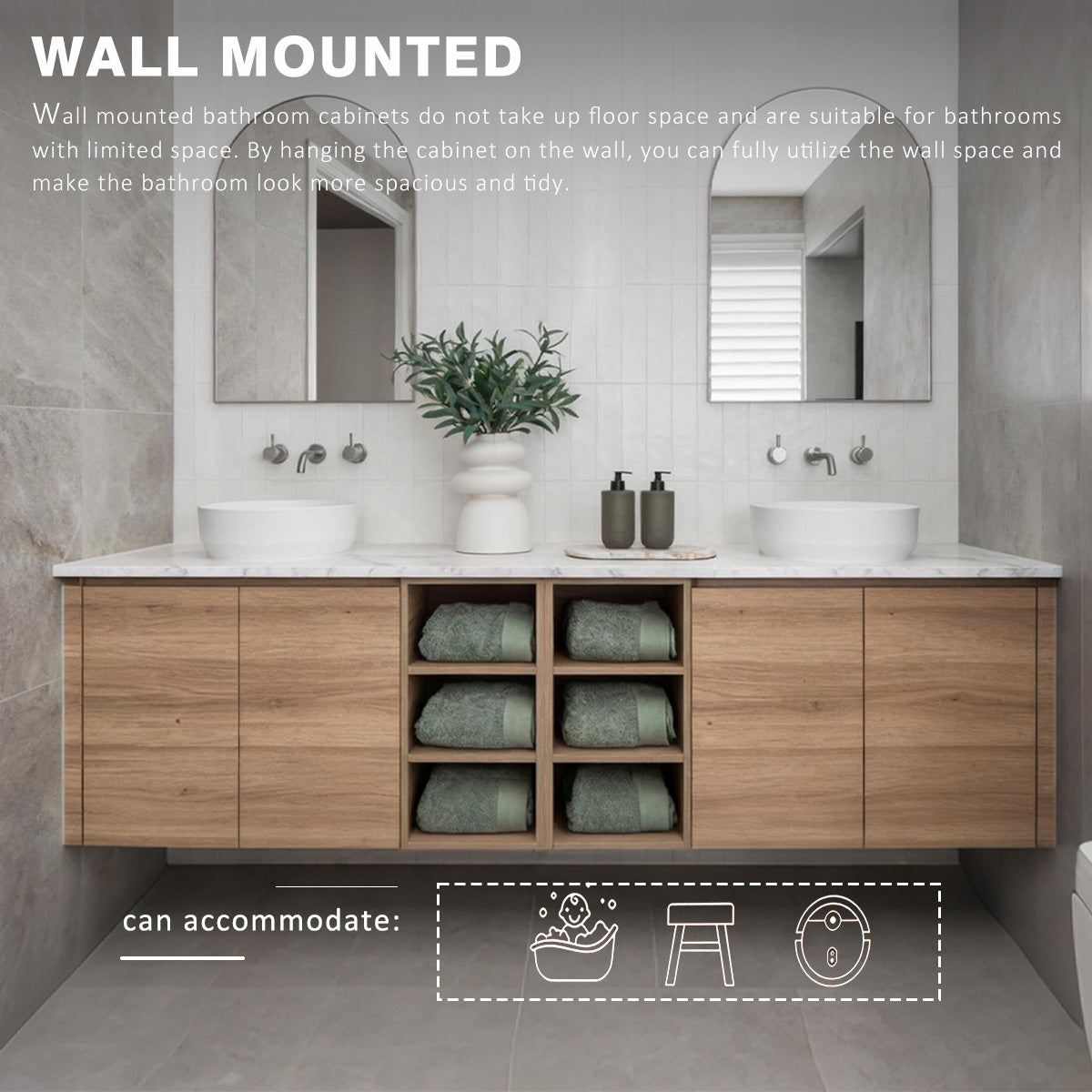 Wall-Mounted Floating Design: Floating design saves floor space, enhances aesthetics, and simplifies cleaning.