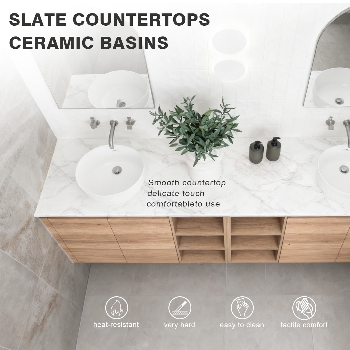 Sintered Stone Countertop: Crafted from natural sintered stone—resistant to stains, scratches, and easy to maintain.