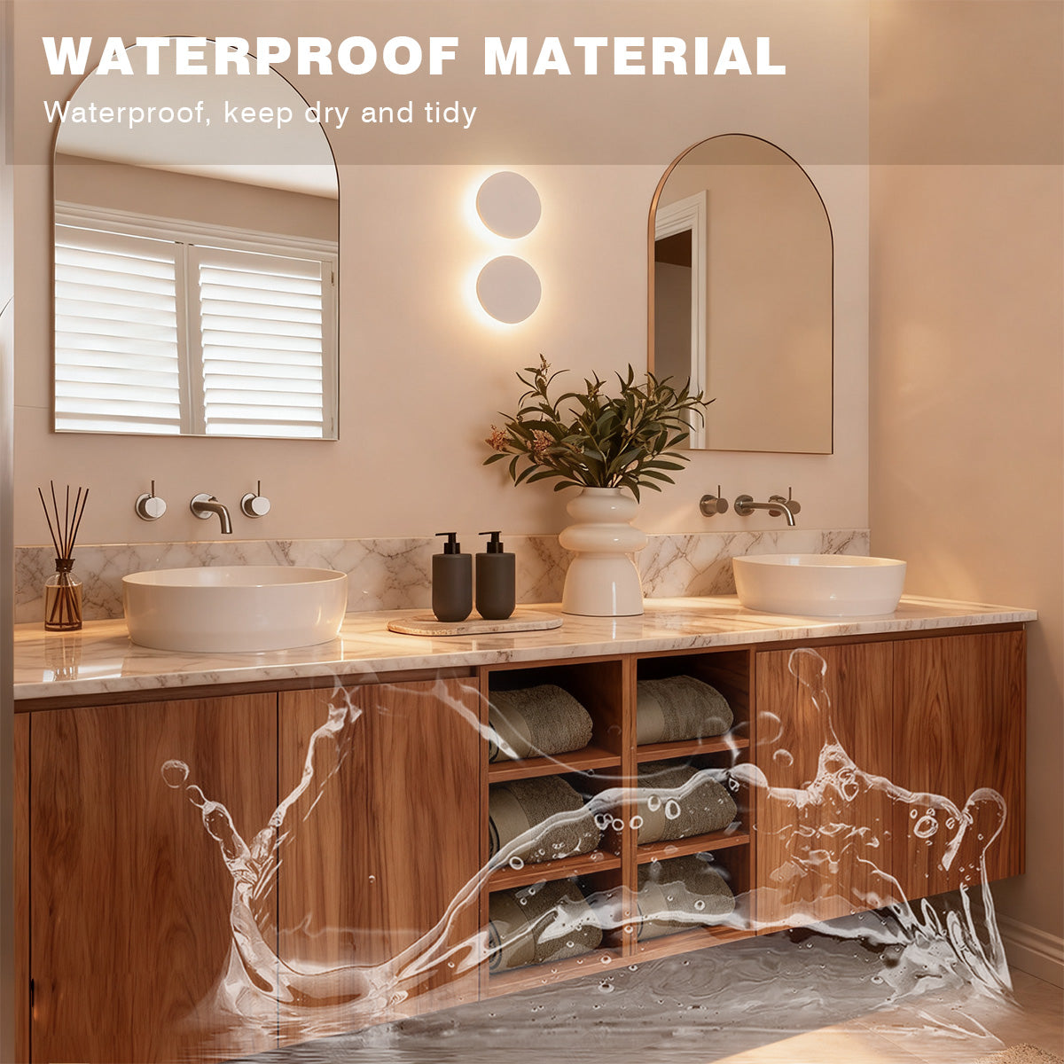 Smart Anti-Fog Mirror: Touch-controlled anti-fog system ensures clear visibility even in humid conditions.
