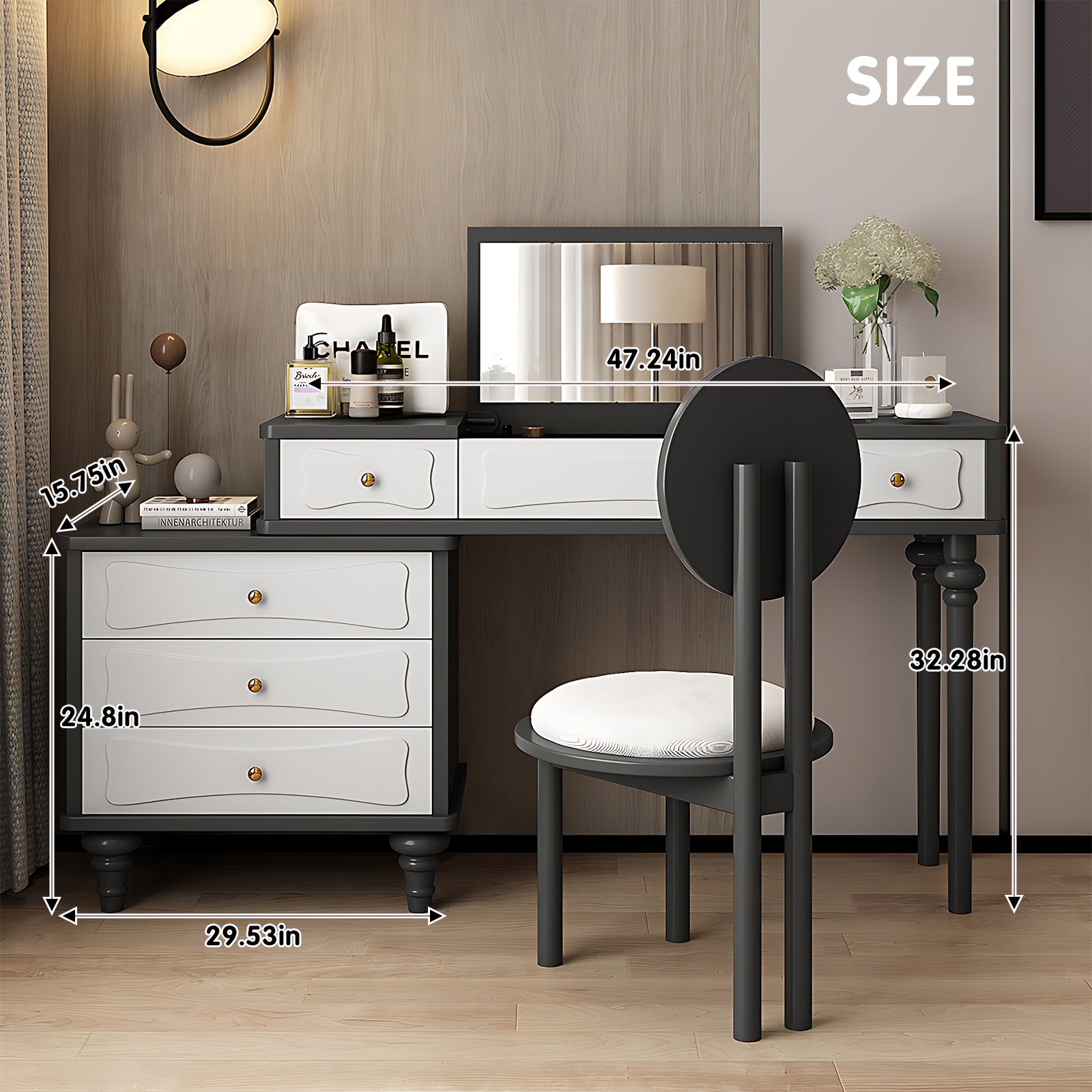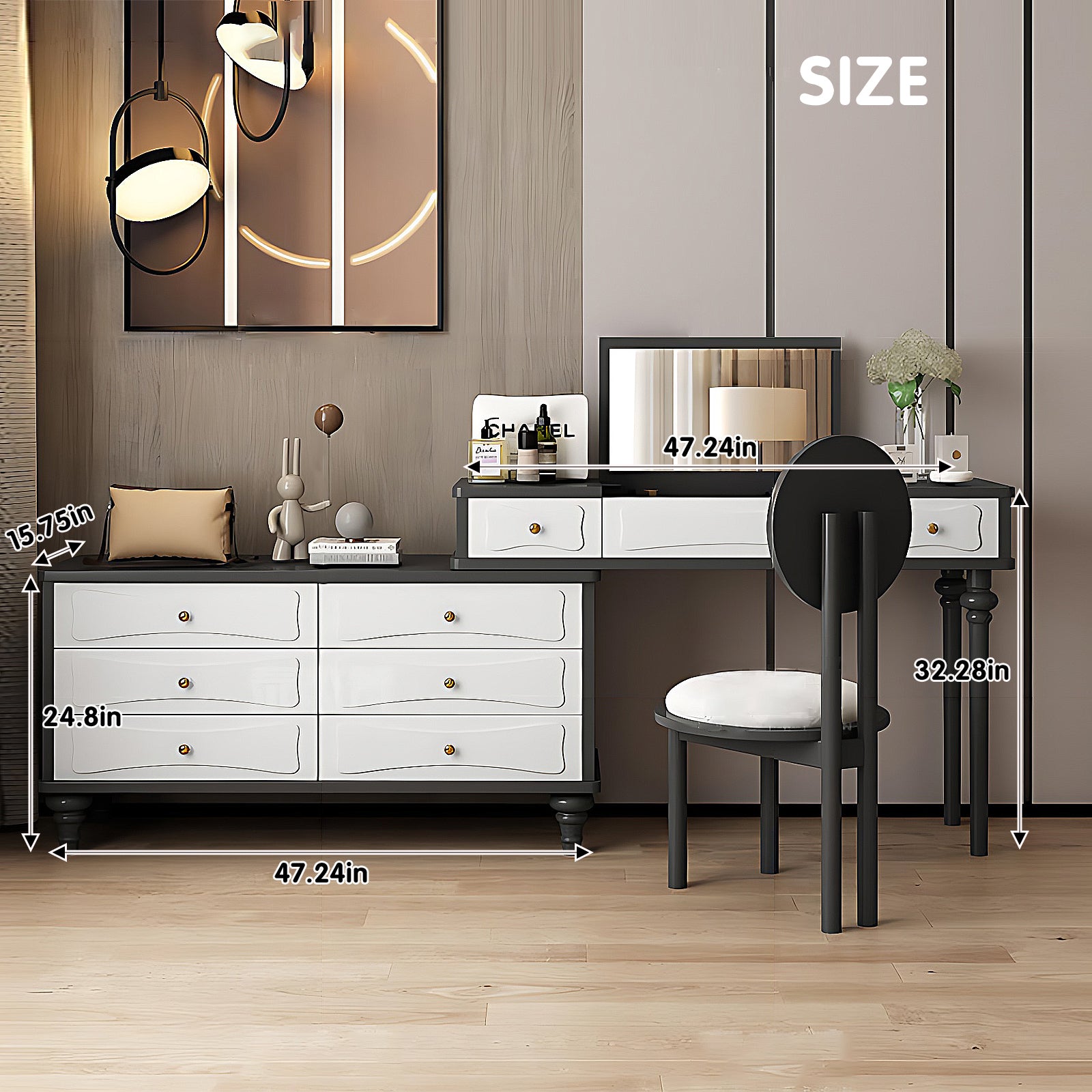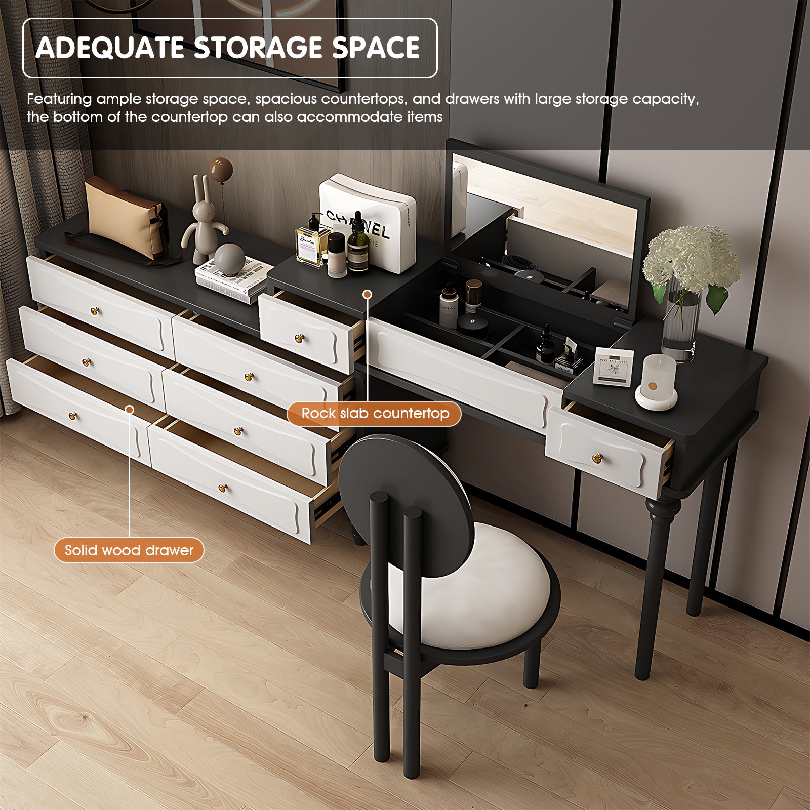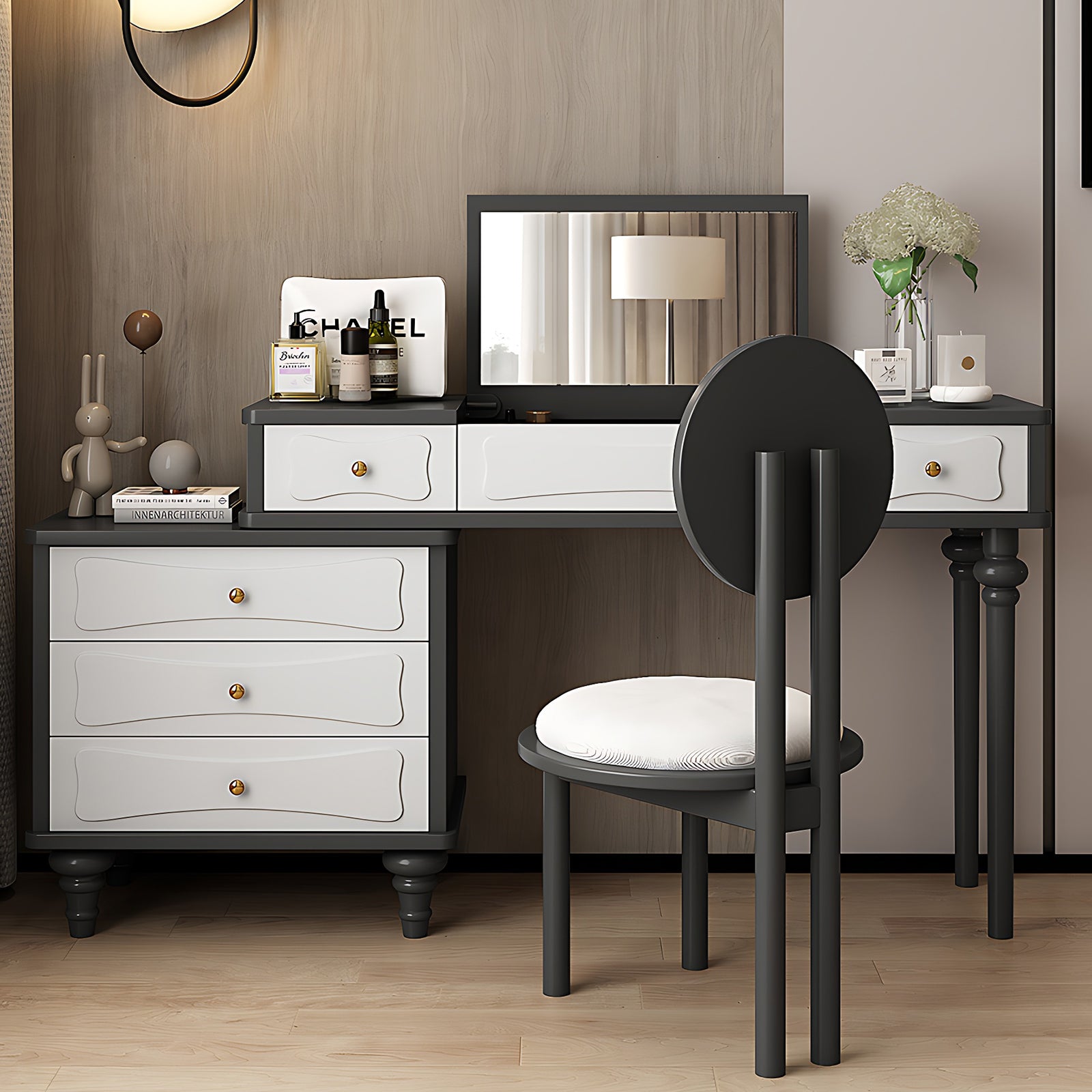 Ample Storage Drawers: Equipped with multiple storage drawers, this vanity offers abundant space to organize your makeup products, brushes, and skincare items. The drawers are designed with smooth-gliding mechanisms, making it convenient to access your essentials.