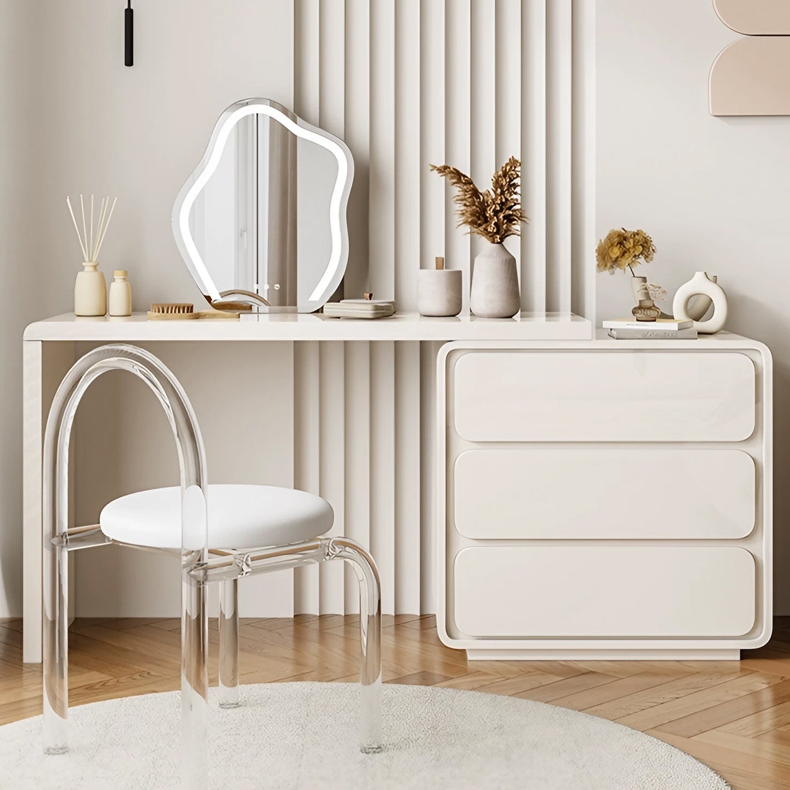 Introducing our Ample Storage Makeup Vanity Set with 3-Color Irregular Mirror and Stool – the ultimate solution for organizing your beauty essentials in style. With ample storage, an expandable table, and a sleek modern design, this set is designed to elevate your grooming experience to new heights of luxury and convenience.