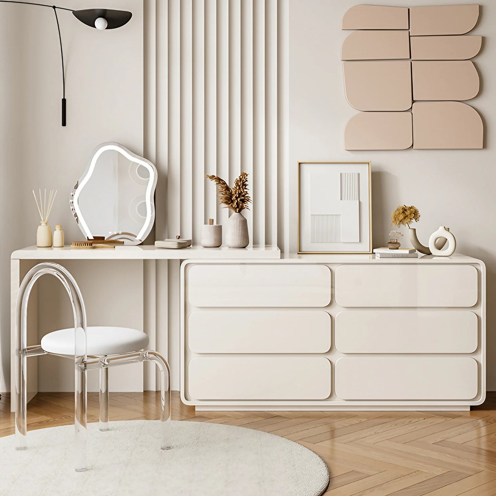 Modern Design: Embrace contemporary elegance with our vanity set's sleek and modern design. Clean lines, minimalist details, and sleek finishes create a chic and sophisticated aesthetic that complements any decor style, making it a stylish addition to your bedroom or dressing area.
