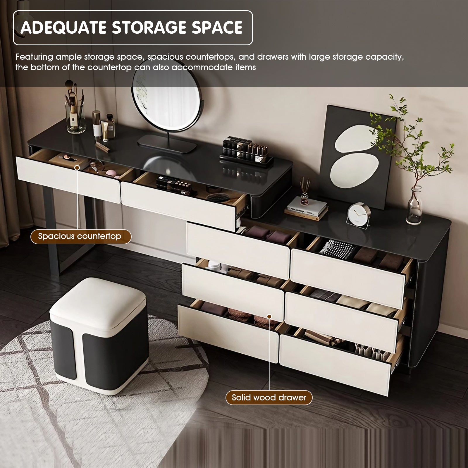 Soft-Closing Drawers: Equipped with soft-closing drawer tracks, this vanity offers smooth, quiet operation. The drawers provide ample storage space for makeup, skincare, and other essentials, keeping your space organized and clutter-free.