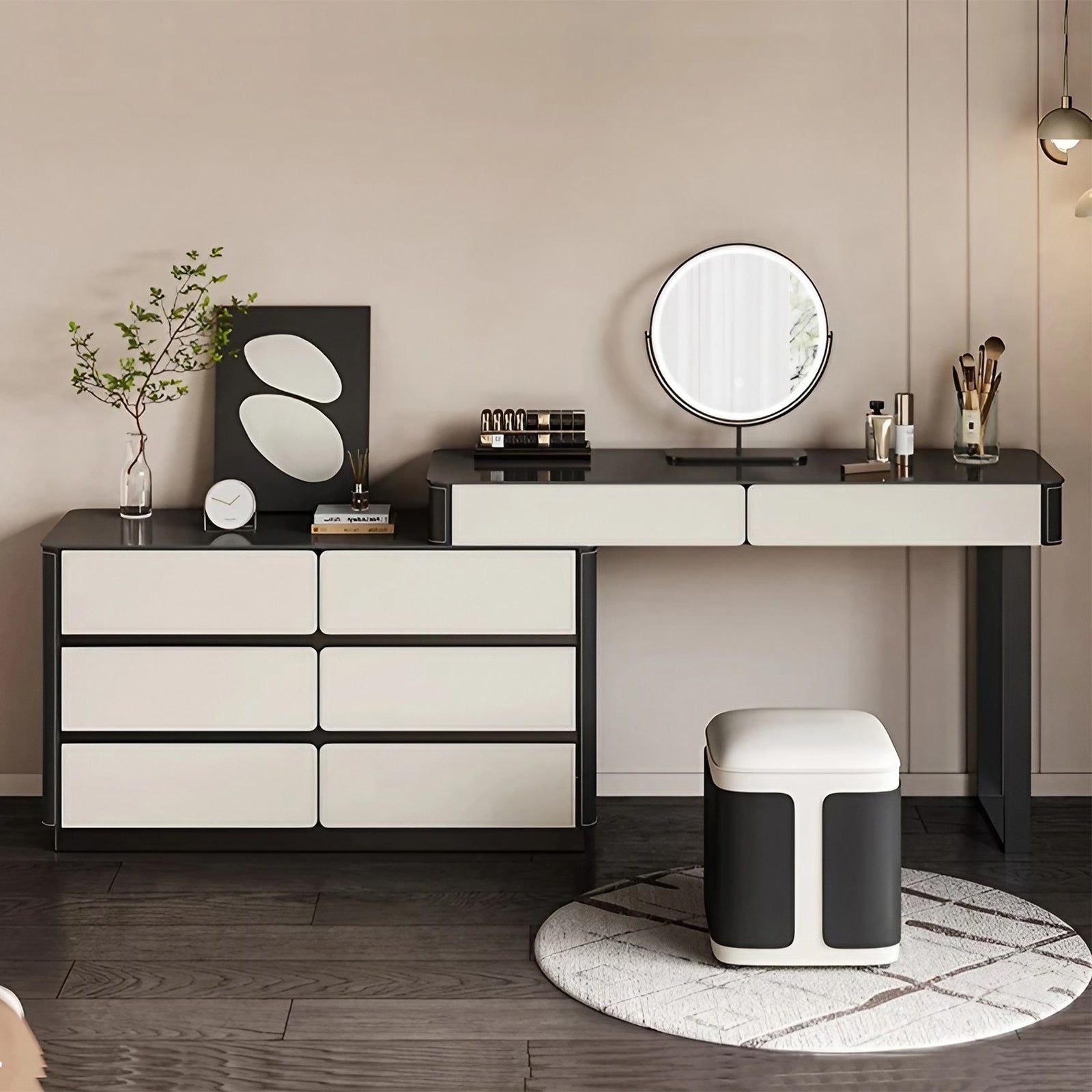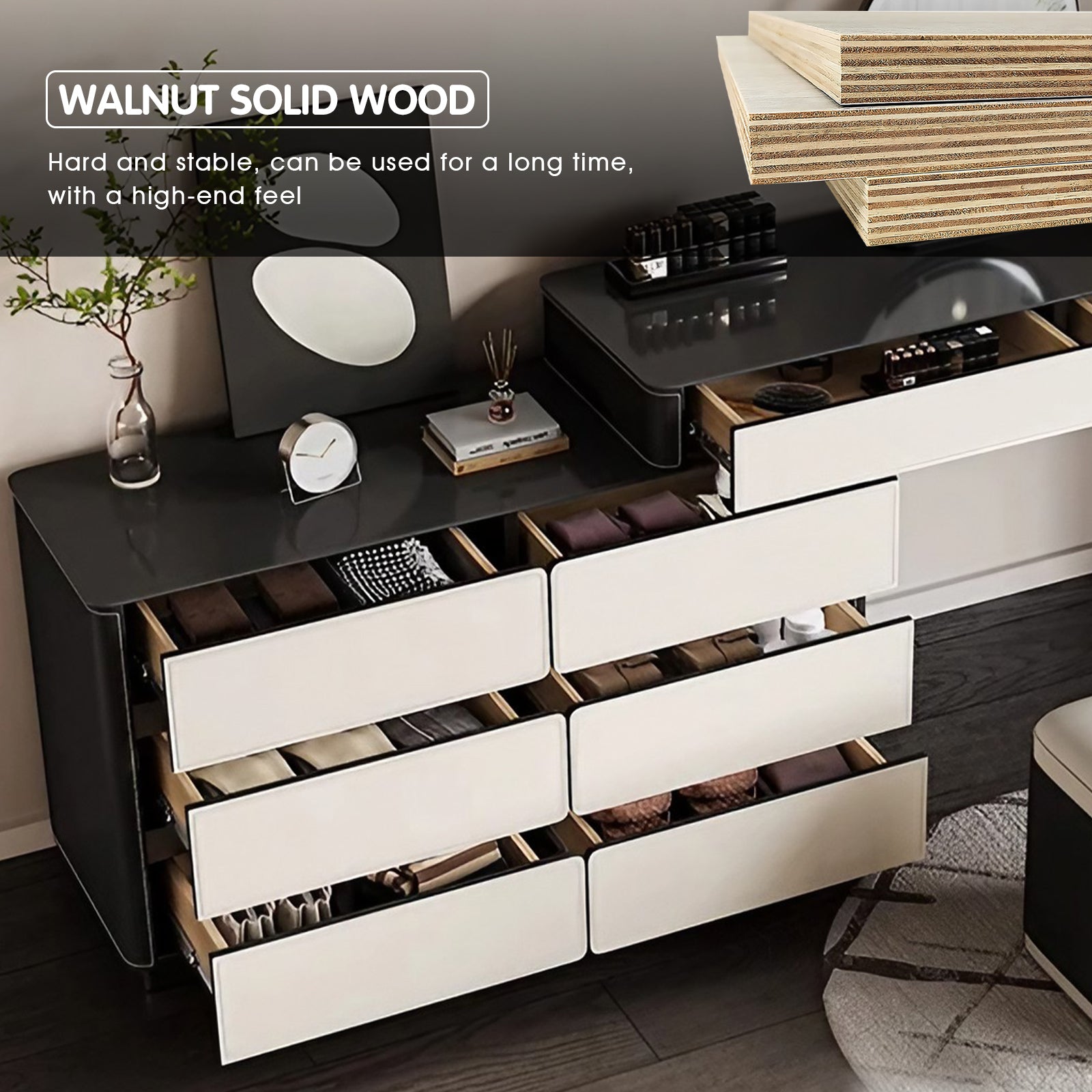 This Italian minimalist makeup vanity brings together sleek design and high-end functionality. Featuring a solid wood multi-layer board, saddle leather accents, and soft-closing drawers, it offers both elegance and practicality for your beauty space.