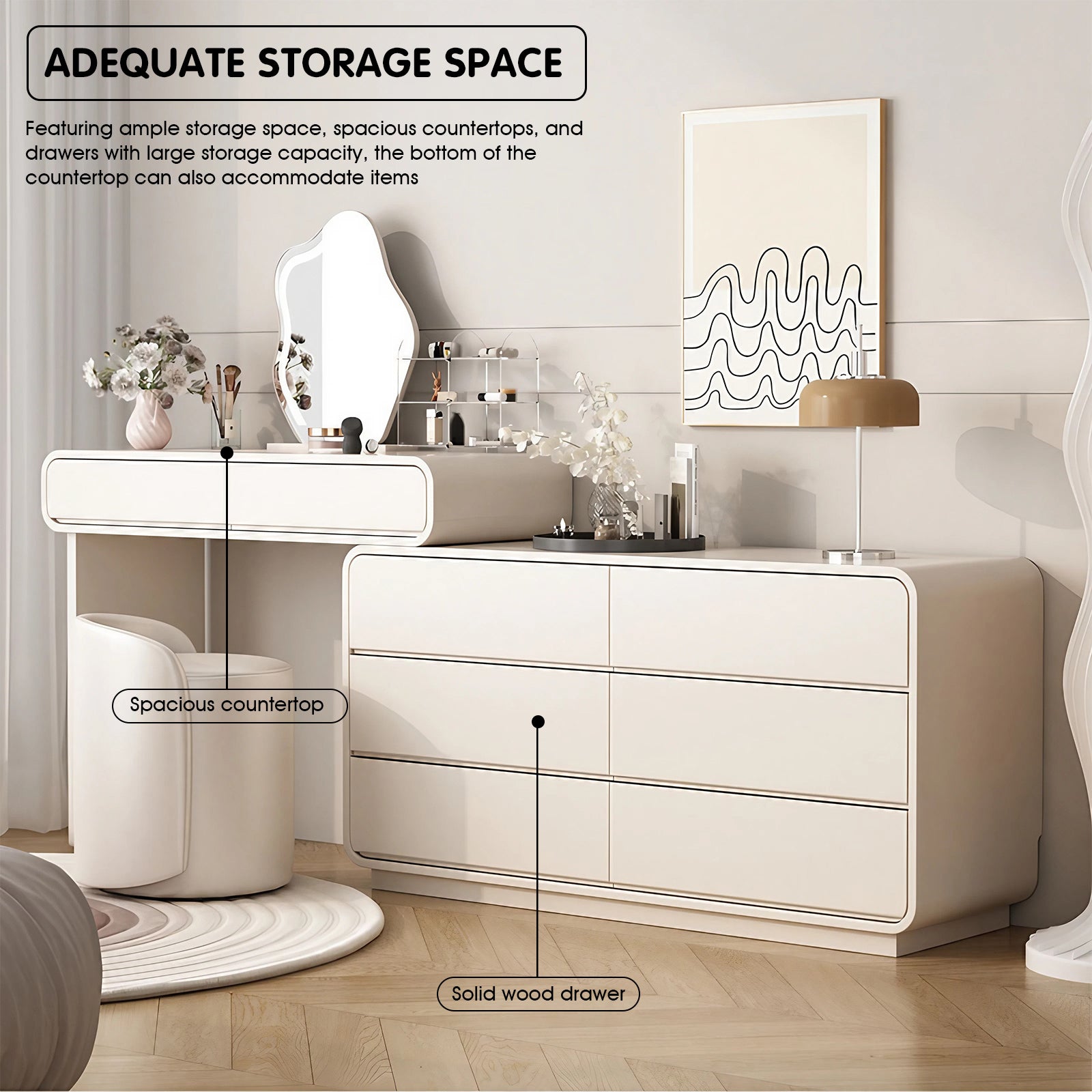 Elegant Creamy Finish: The soft, creamy finish of this makeup vanity set effortlessly blends elegance and warmth, making it the perfect addition to modern, minimalist, or cozy spaces. Its timeless color ensures it complements a variety of interior styles while adding a touch of sophistication to your room.