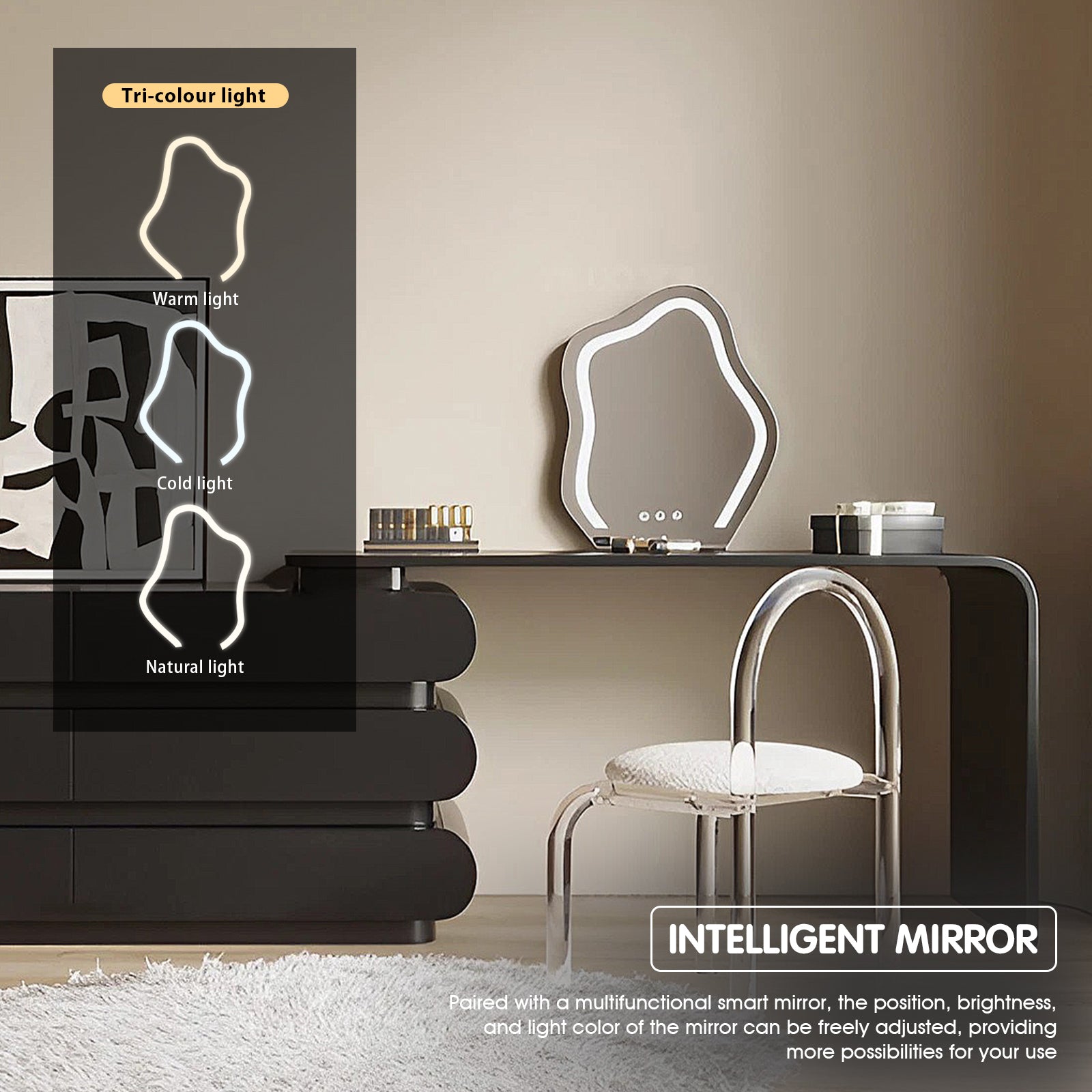 Tri-color LED Mirror: The vanity is equipped with a tri-color LED mirror. This mirror allows you to switch between three different color temperatures. You can also adjust the brightness, ensuring you have the perfect lighting for any makeup application, whether it's a soft daytime look or a glamorous evening style.