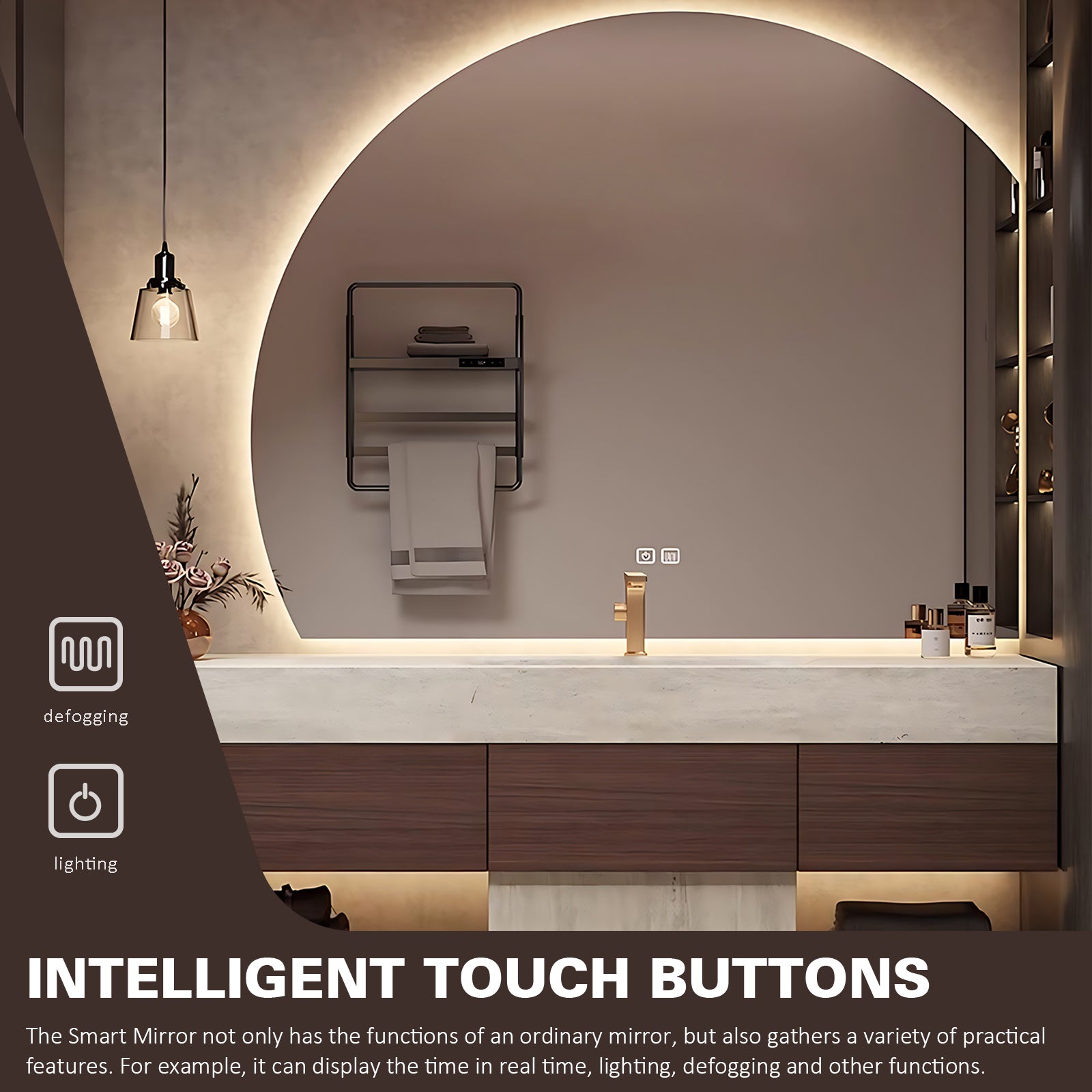 Artistic Mountain Silhouette: The unique backlit mountain design serves as a striking visual centerpiece, seamlessly blending natural inspiration with modern elegance. It creates a tranquil and spa-like atmosphere, elevating the overall ambiance of your bathroom.