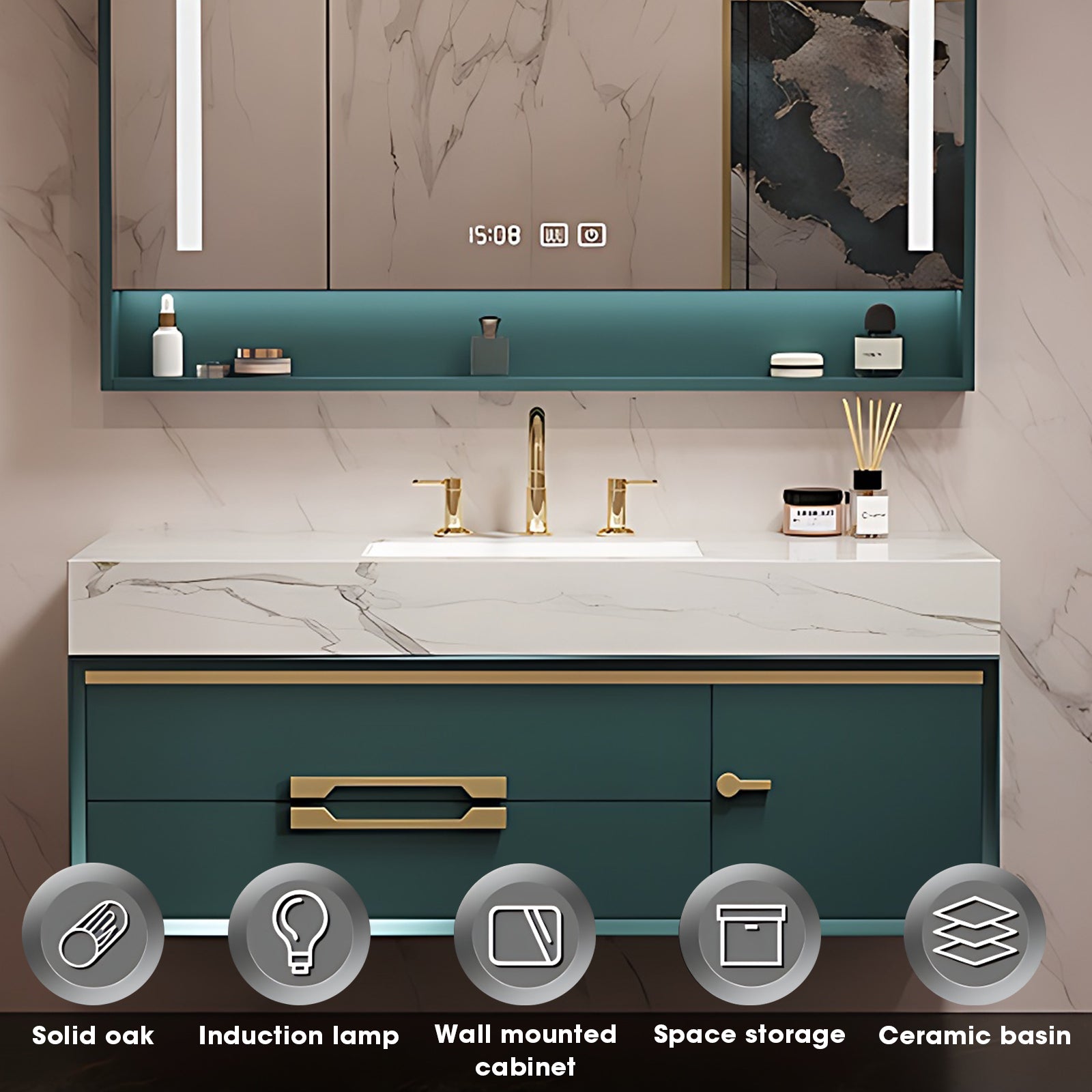 Introducing our Modern Wall Mount Vanity Set with Sink and Mirror Cabinet, a contemporary and space-efficient solution designed to enhance the functionality and style of your bathroom. Transform your daily routine into a seamless and elegant experience with this thoughtfully designed and visually striking vanity set.