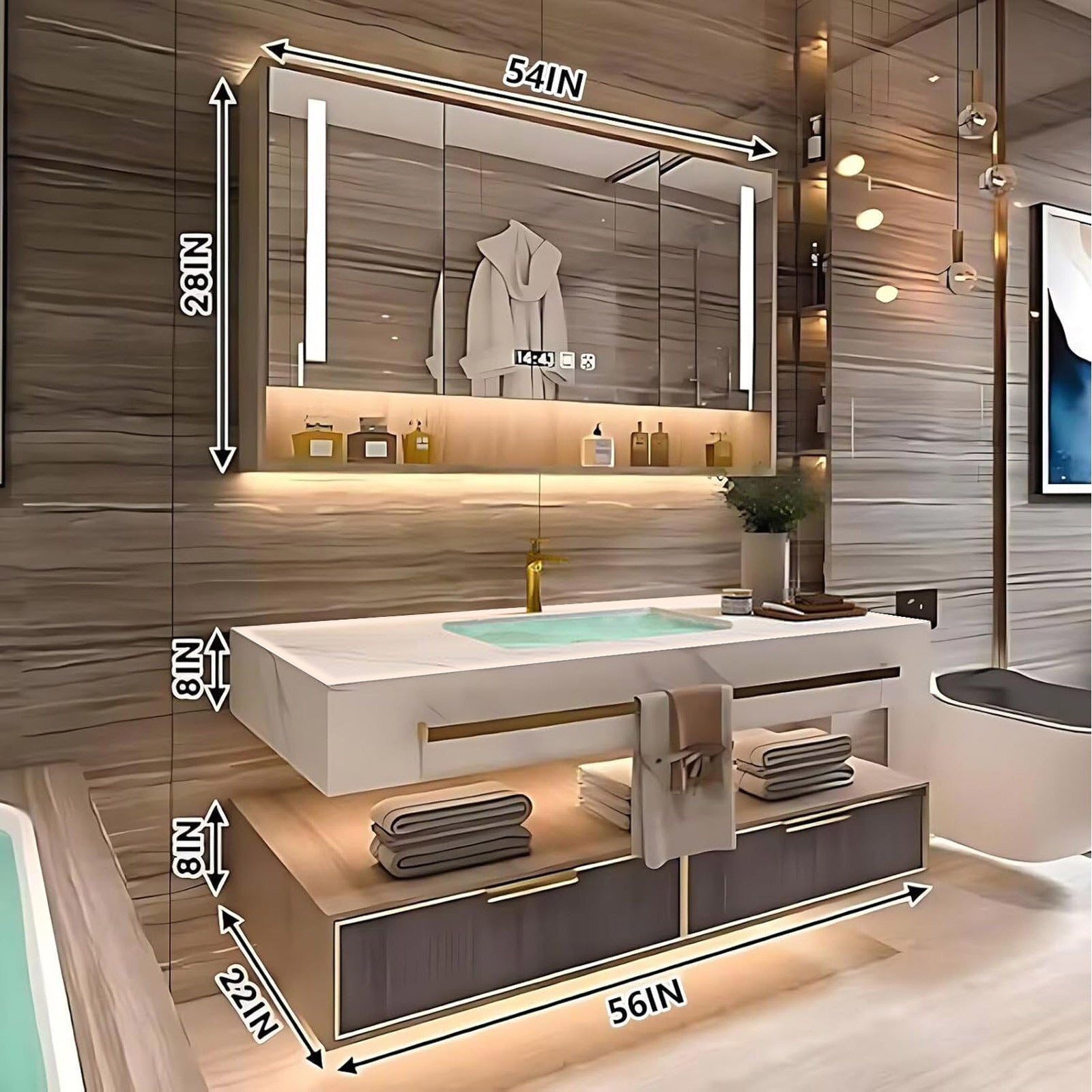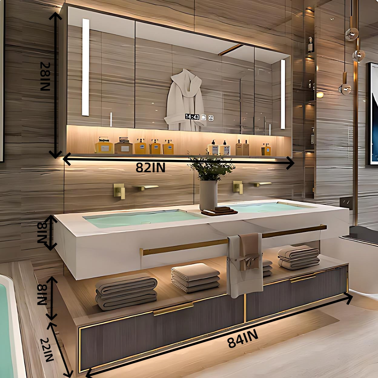 LED Mirror Defogging Cabinet: Experience clarity and convenience with the LED mirror defogging cabinet. This innovative feature ensures that your mirror stays clear and free from fog, providing optimal visibility during your grooming rituals. The built-in LED lights add a touch of contemporary flair to your bathroom.