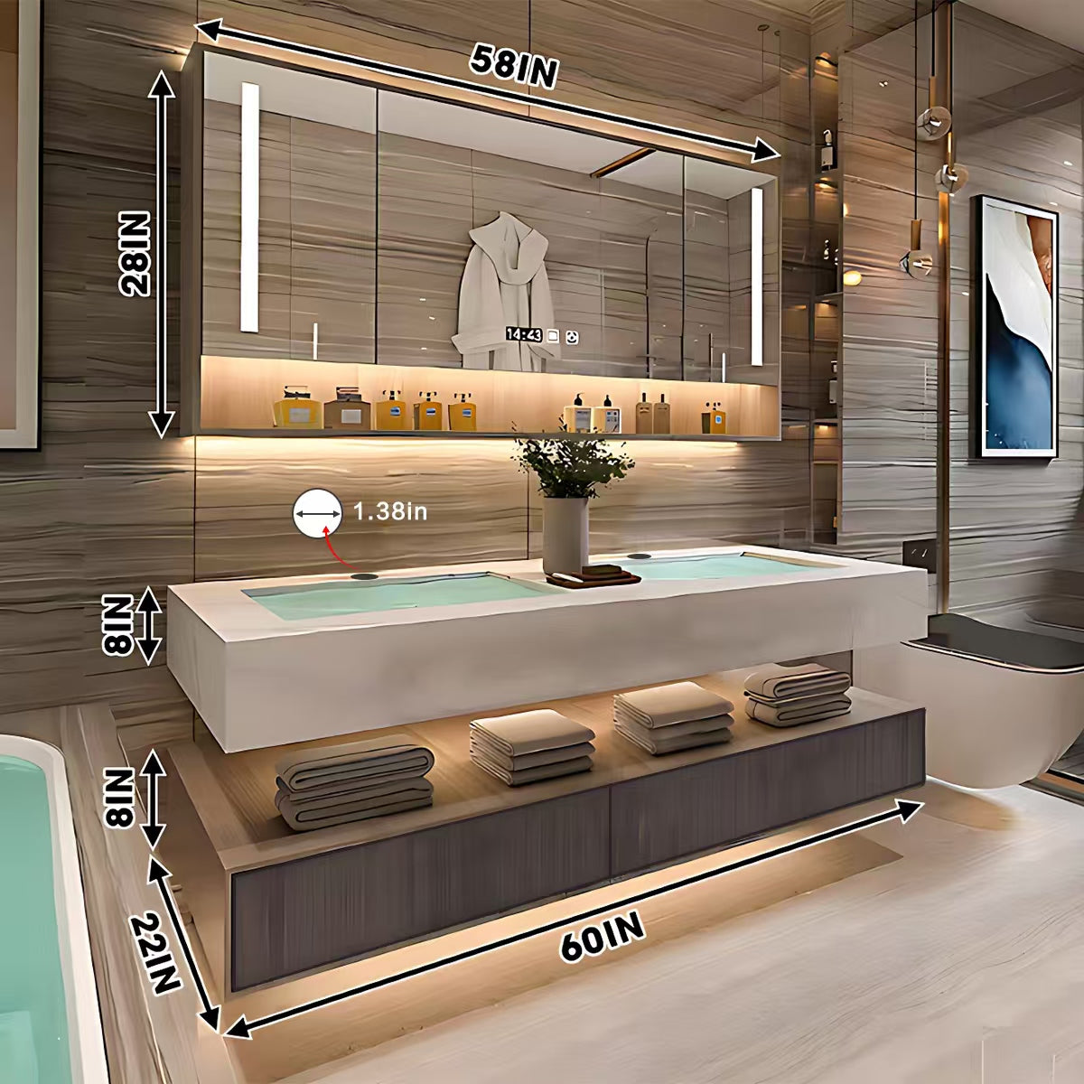 LED Mirror Defogging Cabinet: Experience clarity and convenience with the LED mirror defogging cabinet. This innovative feature ensures that your mirror stays clear and free from fog, providing optimal visibility during your grooming rituals. The built-in LED lights add a touch of contemporary flair to your bathroom.