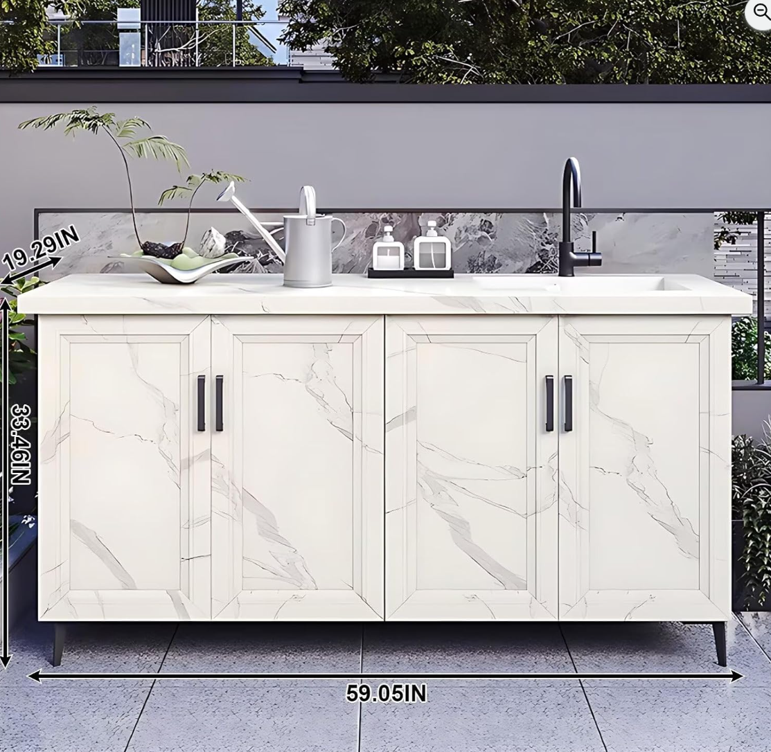 Beautiful and Durable Material: the hardness of the rock slab table top is extremely high; long-term use is not easy to damage; aluminum alloy cabinets can adapt to the complex and changeable outdoor climate environment