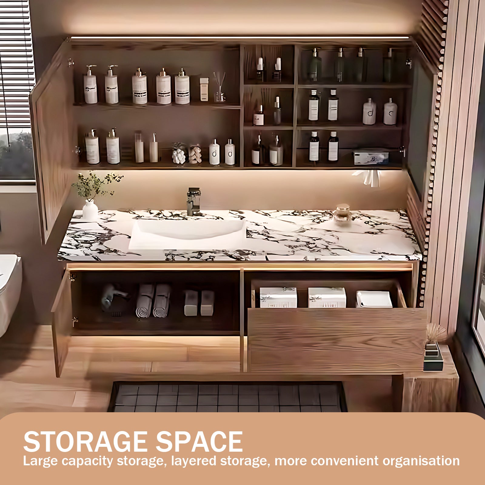 Sleek Slate Countertop: The vanity features a premium slate countertop that is not only visually stunning but also highly resistant to scratches, heat, and stains. This durable surface maintains its smooth, polished look over time, making it ideal for daily use.