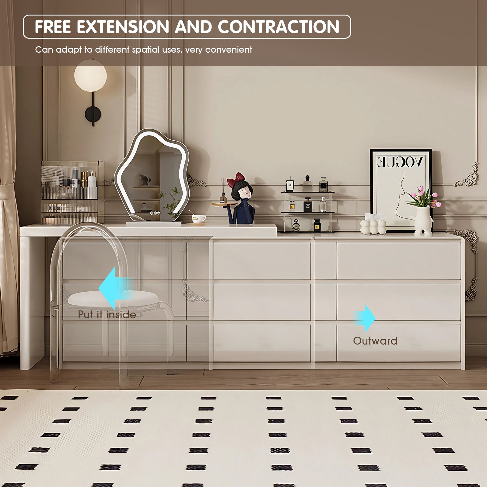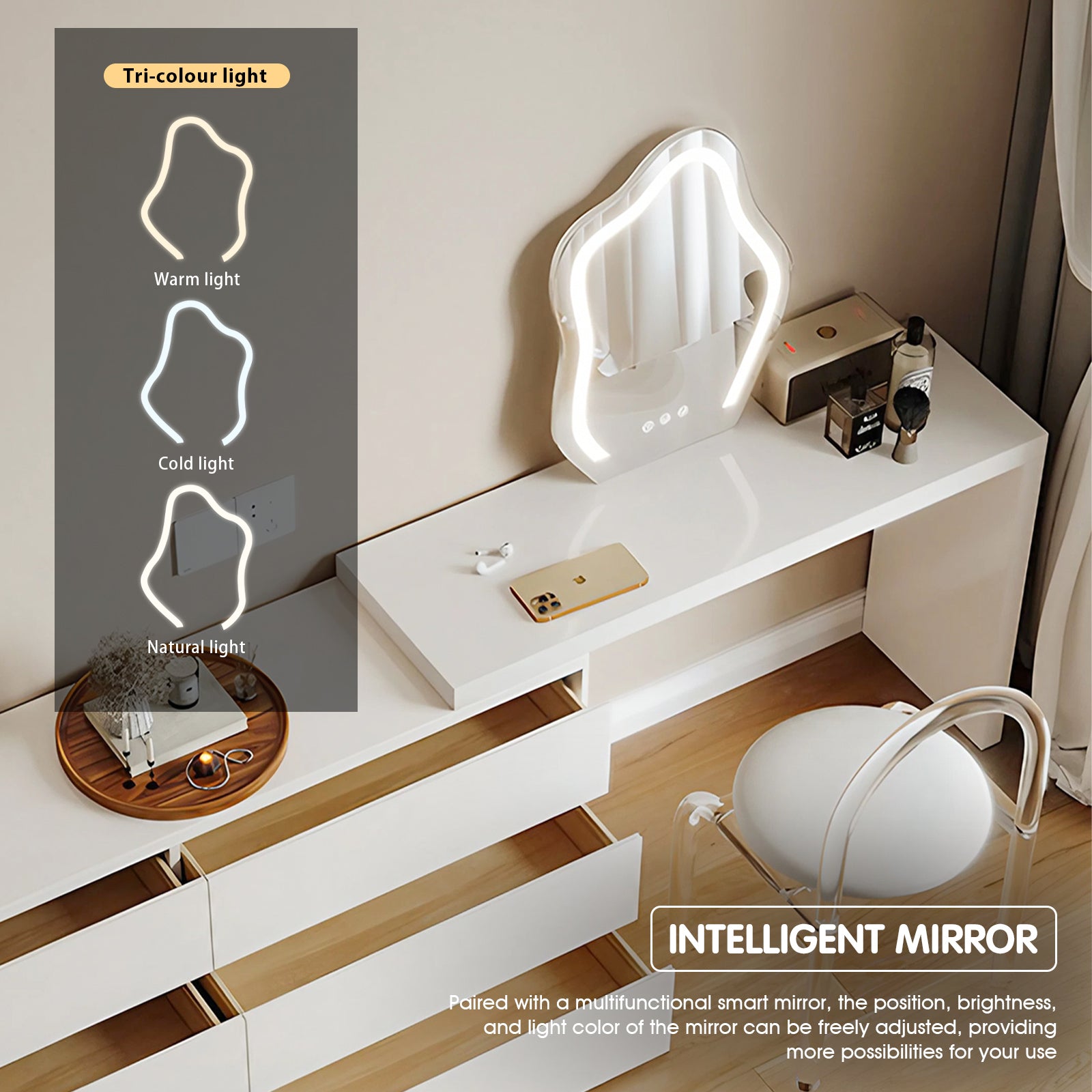 Unique and Captivating Design: The makeup vanity set showcases an extraordinary cloud-shaped mirror that shatters the tedium of conventional square ones. It infuses a sense of whimsy and vitality into the bedroom, emerging as a captivating visual centerpiece.