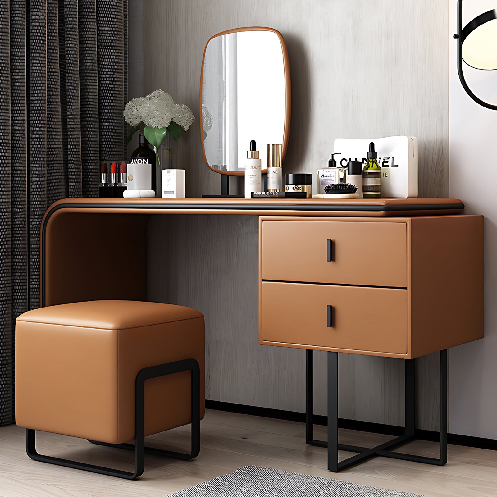 Stylish Design: With clean lines and a minimalist design, this vanity fits seamlessly into contemporary spaces. The leather upholstery and carbon steel accents add an elegant yet functional style to any bedroom, dressing room, or beauty corner.