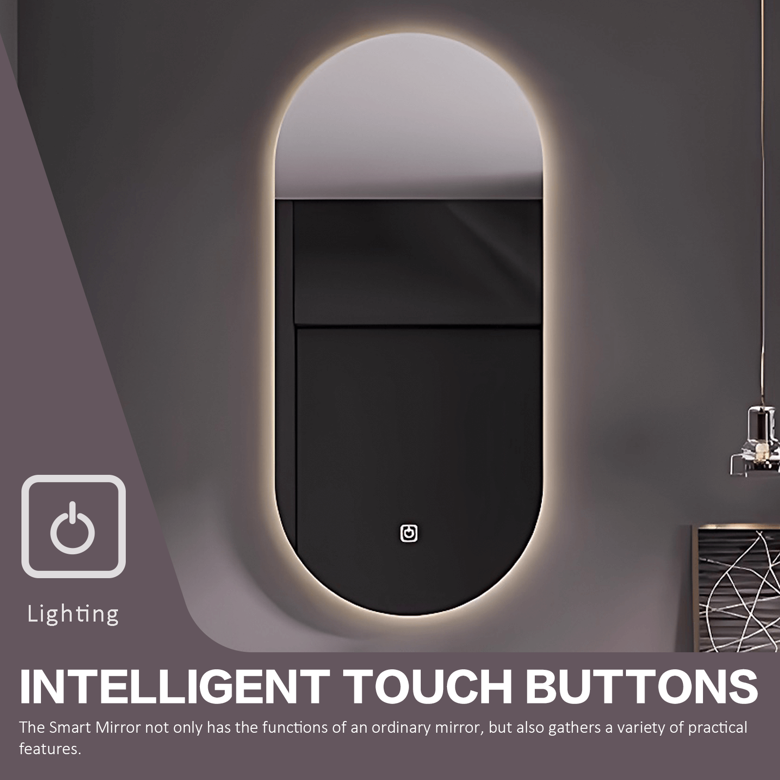 Smart Oval Mirror: Elevate your bathroom design with the sleek sophistication of our smart oval mirror. Infused with modern technology, the one-click lighting feature instantly illuminates your room, creating a warm and inviting atmosphere. Enhance your daily grooming rituals with effortless style and functionality, courtesy of our innovative oval mirror design.
